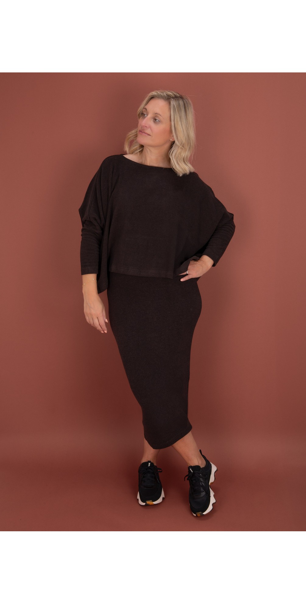 Mama B's best selling Lilla U Plain Fleece Skirt is the perfect companion to their oversized fleece knits, like Bill. Featuring an elasticated waistband, this slim-fitting fleece knit skirt from Mama B is an effortless style that you can simply pull on and go. Complete your look with chunky boots or trainers to suit your style.