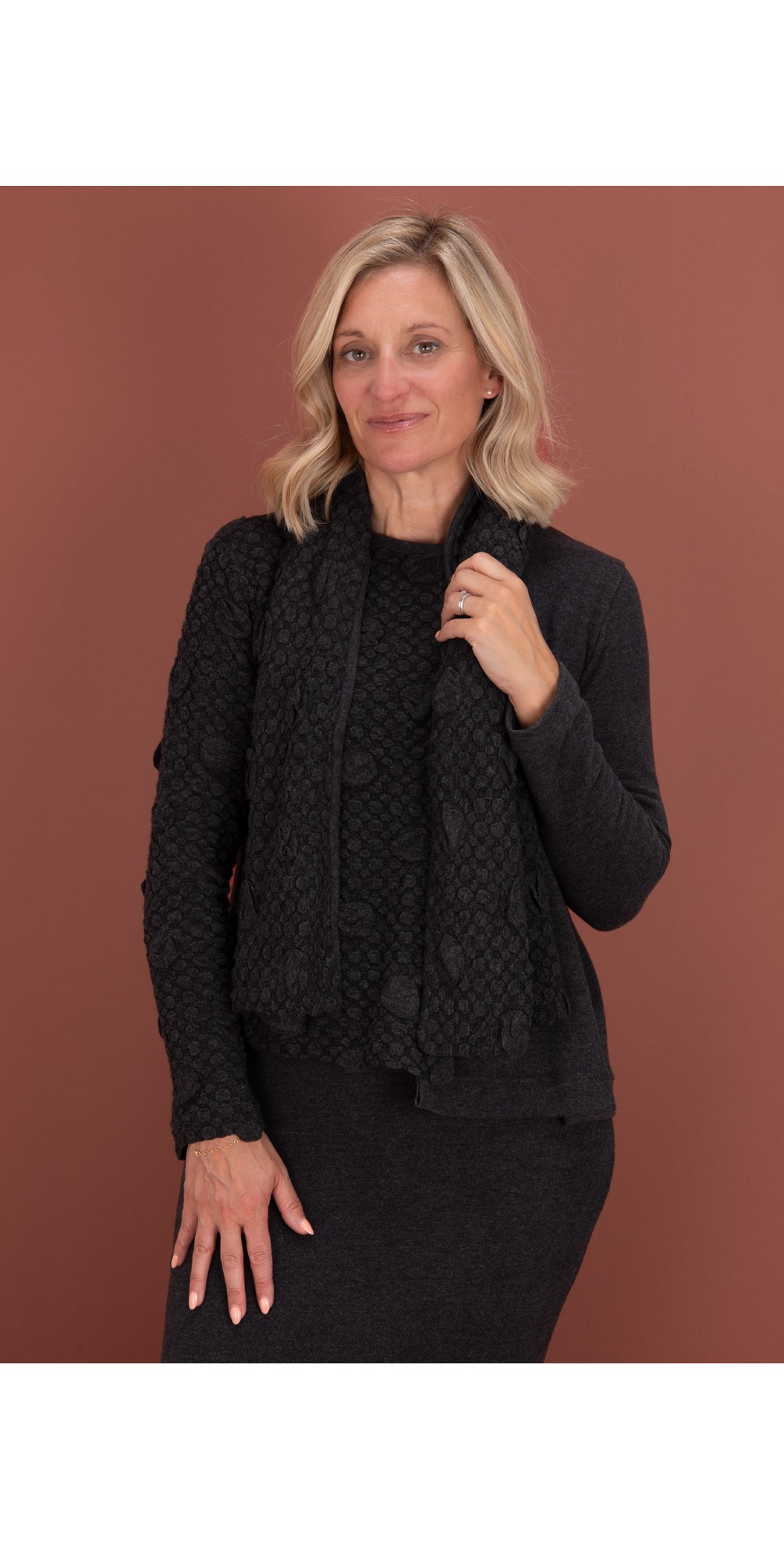 Introducing the Luce Insert Fleece Scarf from Mama B. This thick and cosy scarf features a textured knit design to keep you warm through the cooler months. Pair it with the matching top for a cohesive look!