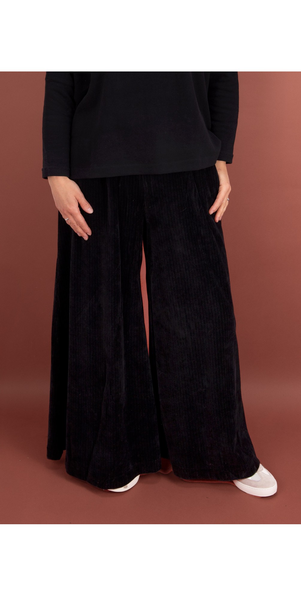 Mama B Nuccia Nero Soft Cord Wide Trouser