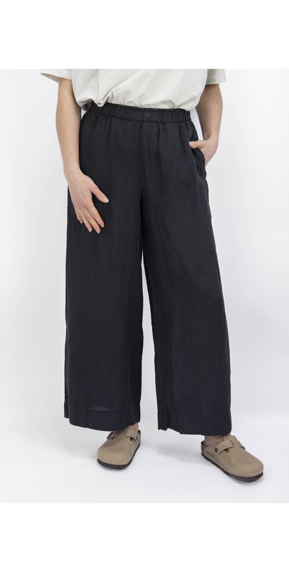 Effortlessly chic with a relaxed Italian-inspired feel, the Mama B Pollo L Calce Wide Crop Leg Trouser is a versatile staple for modern wardrobes. Designed in a wide-leg, cropped silhouette, it features a comfort-first elasticated waistband and subtle tailoring that creates a flattering, fluid line through the leg. Crafted from lightweight, breathable fabric, this trouser pairs beautifully with simple tees, oversized shirts or tailored tops — ideal for casual days, weekend styling or refined everyday dressing with laid-back polish.