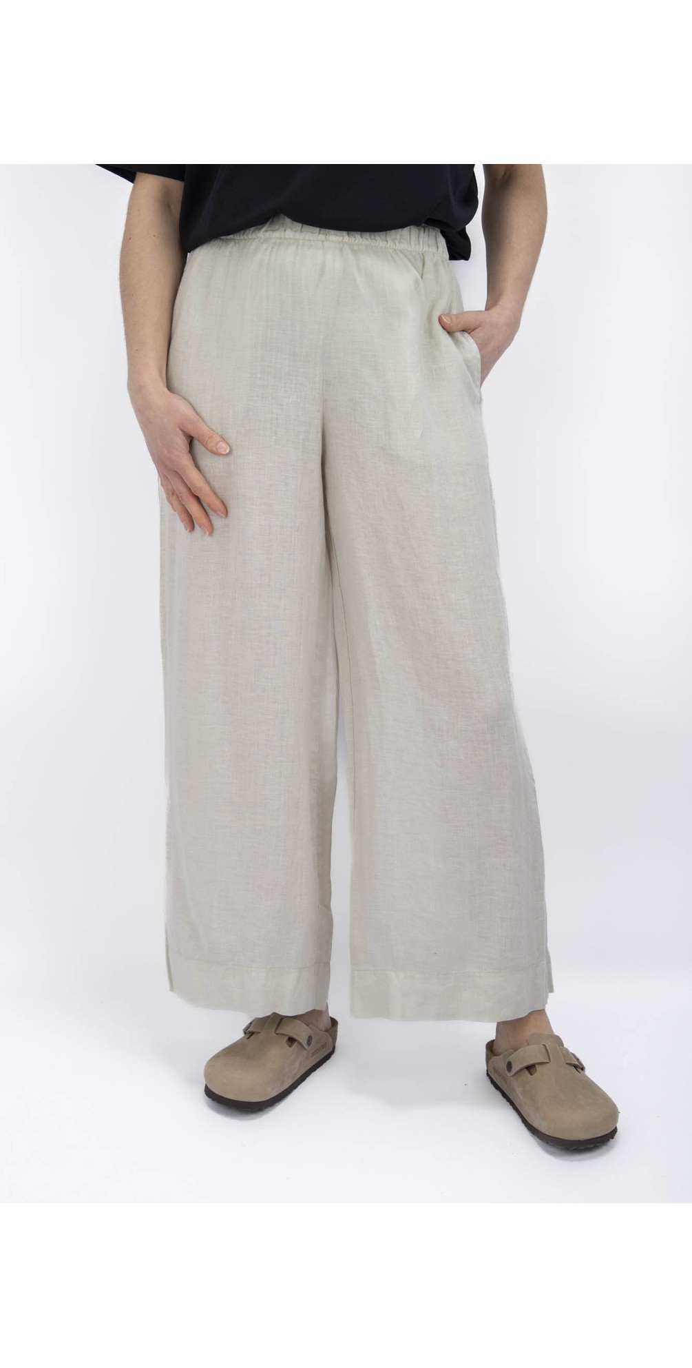 Effortlessly chic with a relaxed Italian-inspired feel, the Mama B Pollo L Calce Wide Crop Leg Trouser is a versatile staple for modern wardrobes. Designed in a wide-leg, cropped silhouette, it features a comfort-first elasticated waistband and subtle tailoring that creates a flattering, fluid line through the leg. Crafted from lightweight, breathable fabric, this trouser pairs beautifully with simple tees, oversized shirts or tailored tops — ideal for casual days, weekend styling or refined everyday dressing with laid-back polish.