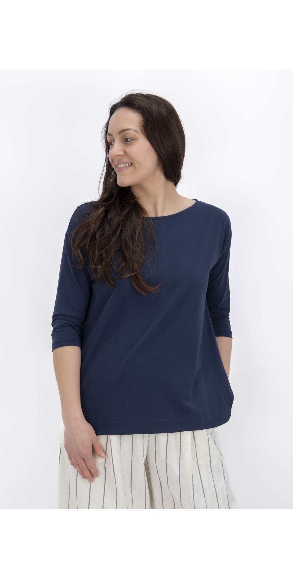 The Mama B Tarvolara U Plain T-Shirt is a classic staple perfect for layering! Made in Italy, this design boasts a flattering 3/4 length fitted sleeve in a boxy fit and is made from Mama B's signature cotton blend. Wear with Mama B Trousers for an easy and chic look.