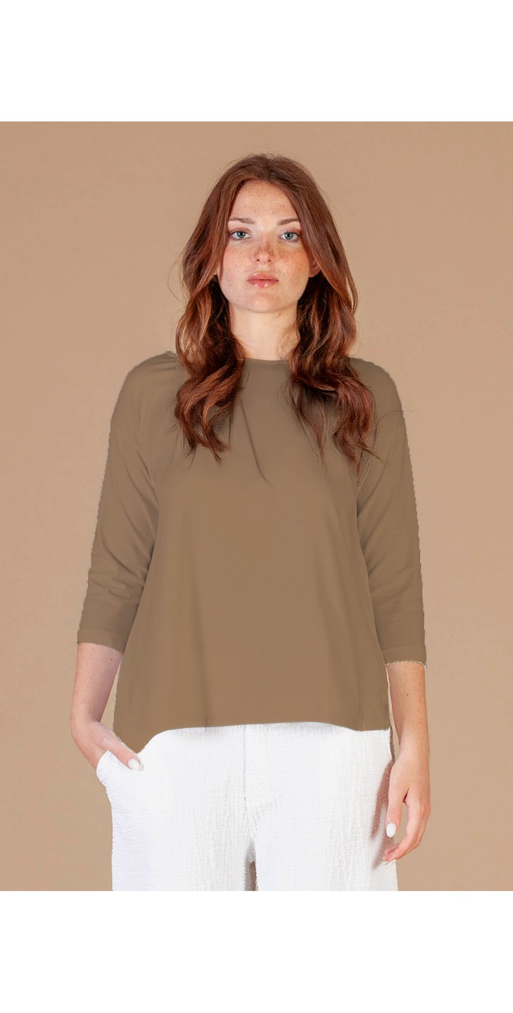• 3/4 length sleeves with dropped shoulder seam