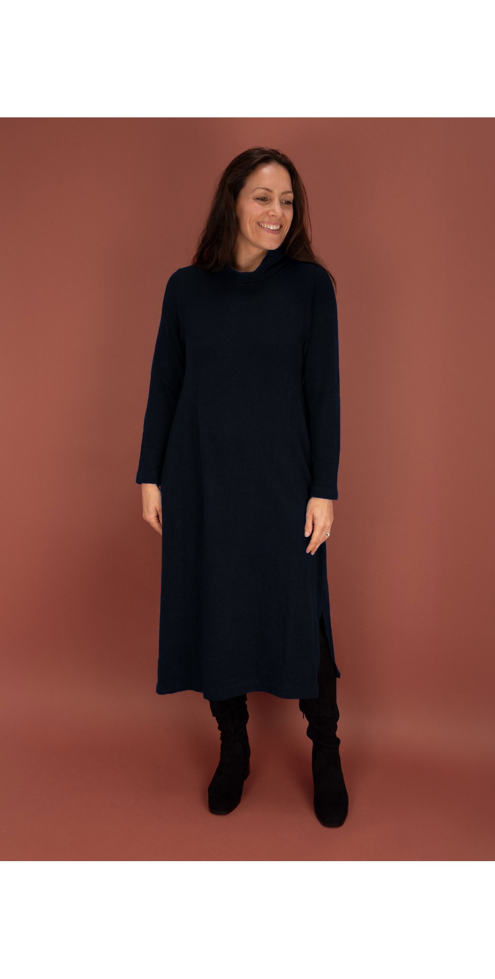 Your search for the perfect jumper dress ends here. The Mama B Tosca U fleece dress is crafted from Mama B's signature super-soft fleece, offering all-day comfort and cozy warmth. Designed with a roll neckline and full-length sleeves, it’s the ultimate easy-wear winter dress.