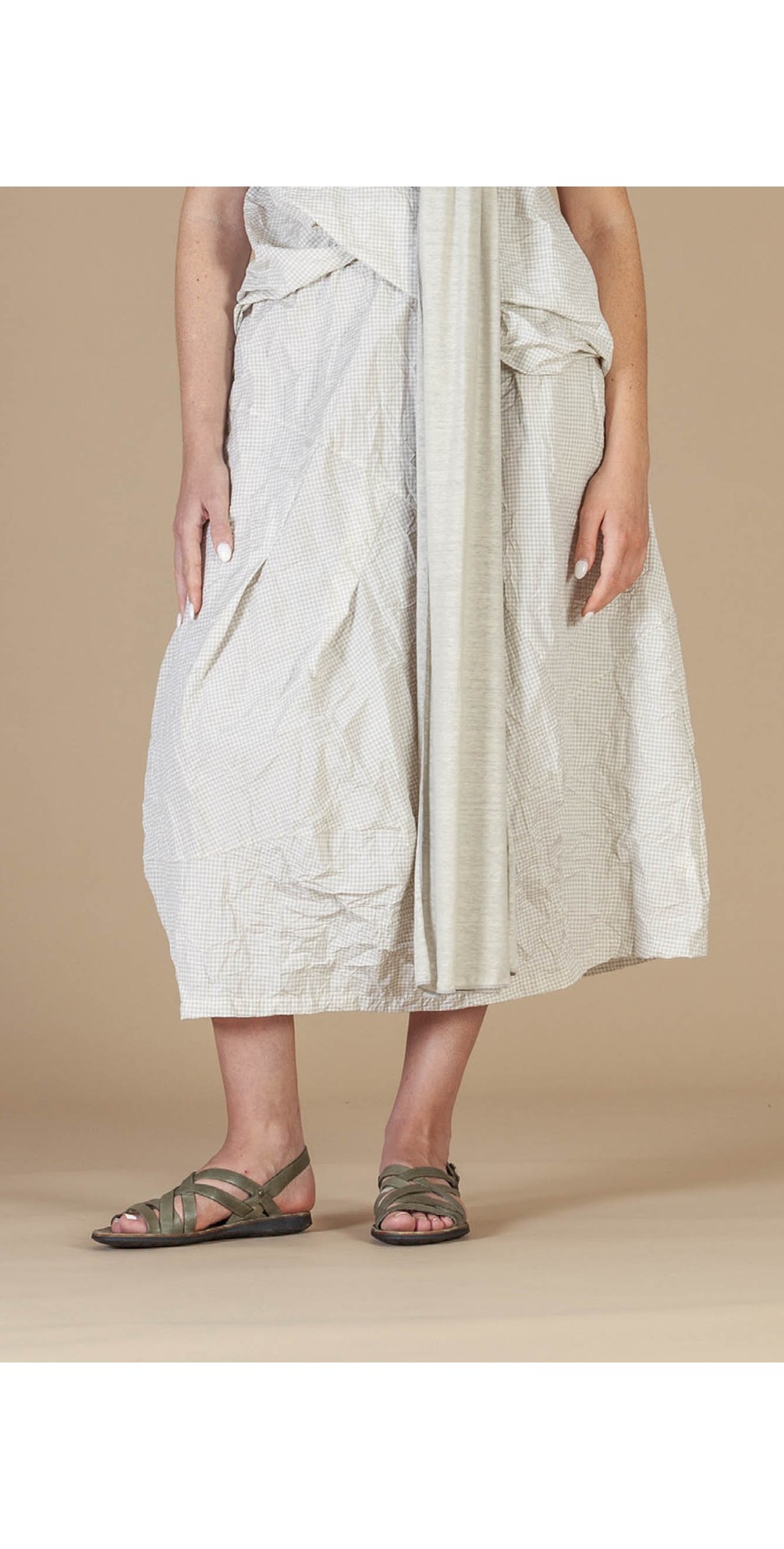 The Ultima G Crinkle Check Skirt by Mama B is a contemporary statement piece that blends relaxed comfort with the brand’s signature artistic style. Designed with a flattering silhouette and textured finish, it brings effortless movement and modern appeal to everyday dressing.