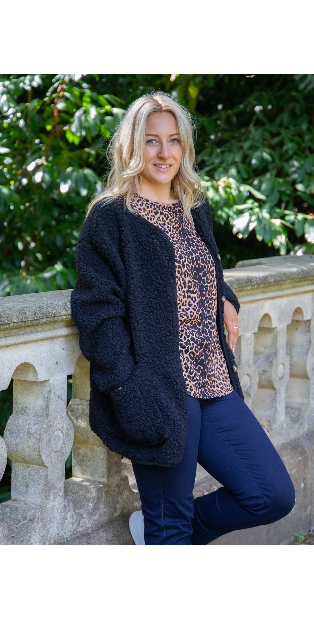 The Lucile Fleece Jacket from Marta Du Chateau is a cosy, yet lightweight jacket ideal for springtime dressing. Its soft teddy borg fabric adds a touch of texture to your looks and the round neckline is versatile for layering. Note the two front pockets to place your hands.