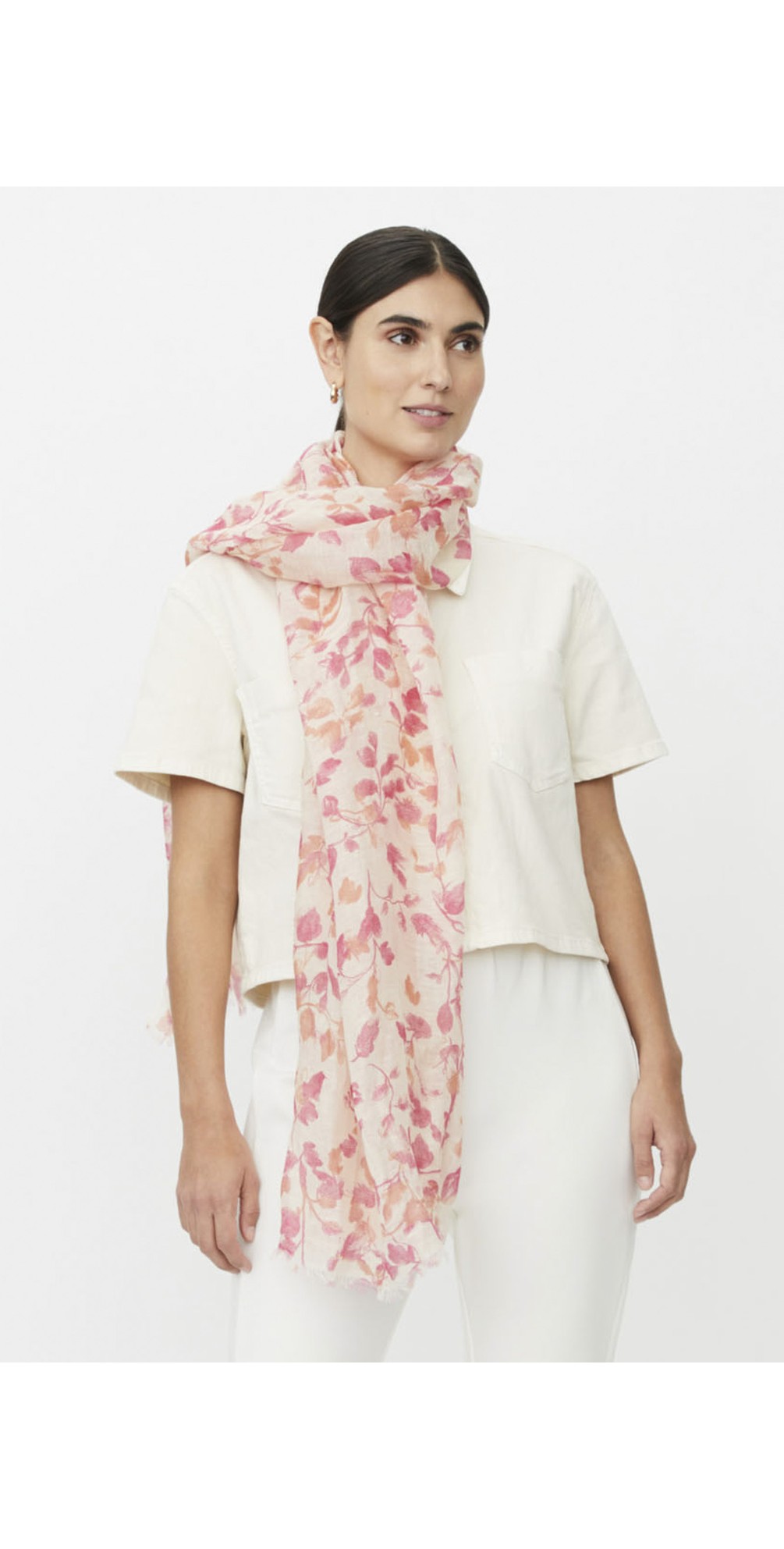 Crafted from a breathable cotton and linen blend, the Avenelle Scarf feels soft against the skin while draping elegantly around the neck or shoulders. The subtle floral pattern in warm pink and orange tones adds gentle colour and personality, making it an easy accessory to style with dresses, knitwear, or lightweight jackets.