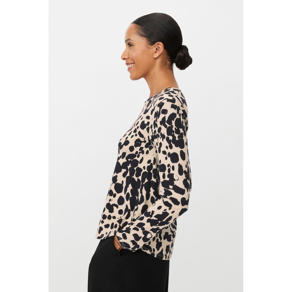 The Badisna Jersey Top is a refined staple that merges comfort with feminine elegance. Crafted in a luxuriously soft jersey blend, this top features a graceful A-shape silhouette that subtly flares from bust to hem, offering ease of movement and a flattering drape. With long sleeves and a classic round neckline, this top maintains a clean, minimalist look that works year-round. One of its standout details is the monochromatic print, adding an artistic touch that elevates the otherwise simple design