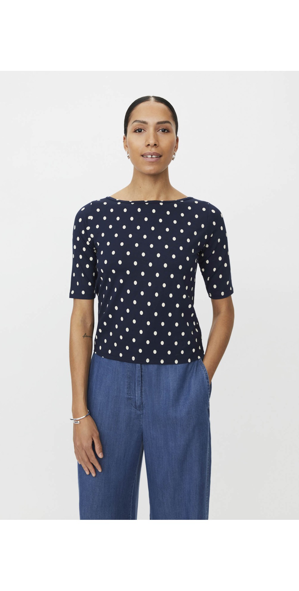 • Navy polka dot print