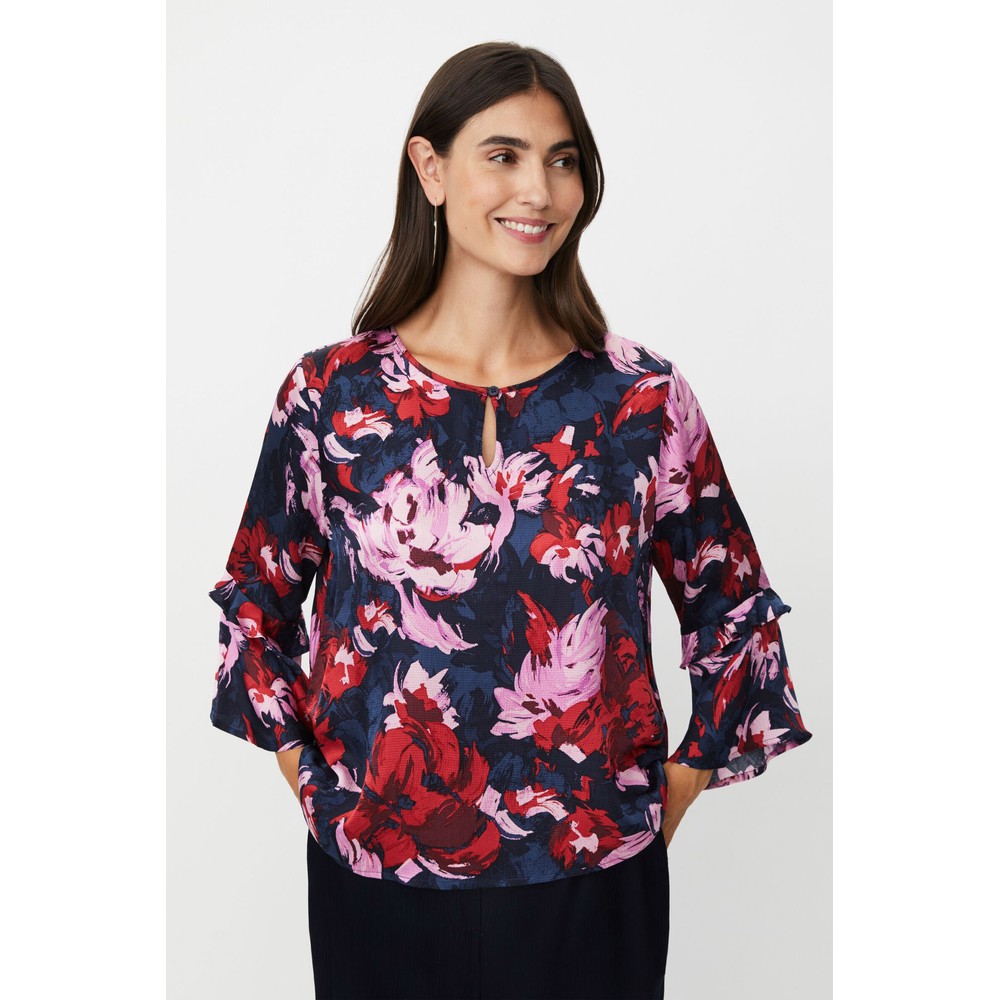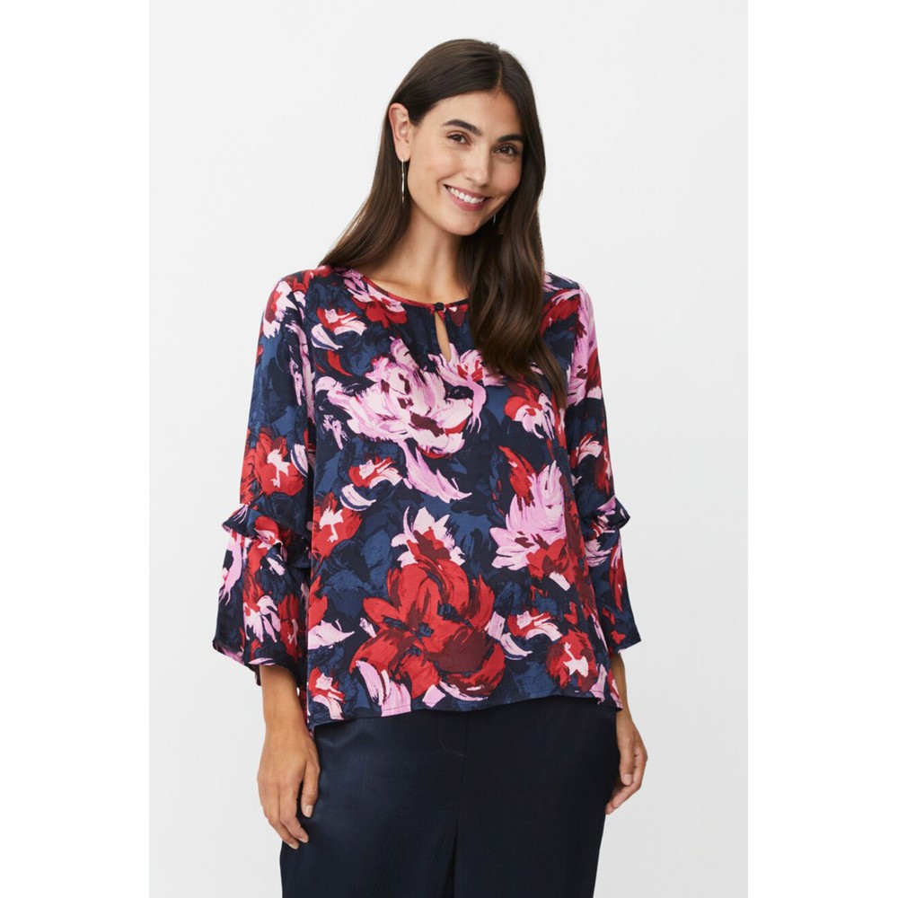 Masai Clothing MaBimelda Scarlet Sage Satin Print Ruffle Top