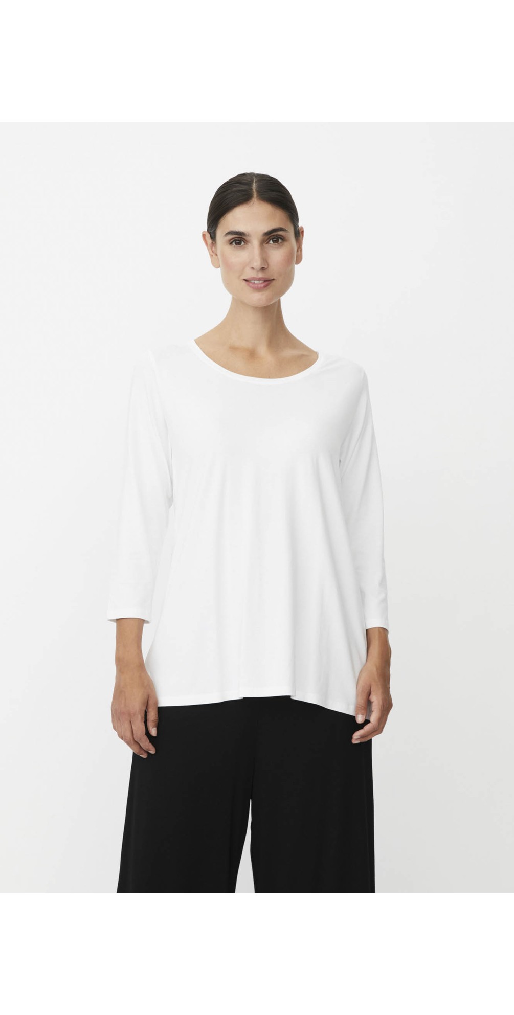 At first glance, the Cecille Jersey Top offers an understated elegance: soft jersey fabric flows in a gentle A-line silhouette, gracefully widening from the bust to the hem. The neckline is simple and classic—neither too deep nor too high—creating a clean frame for your face.