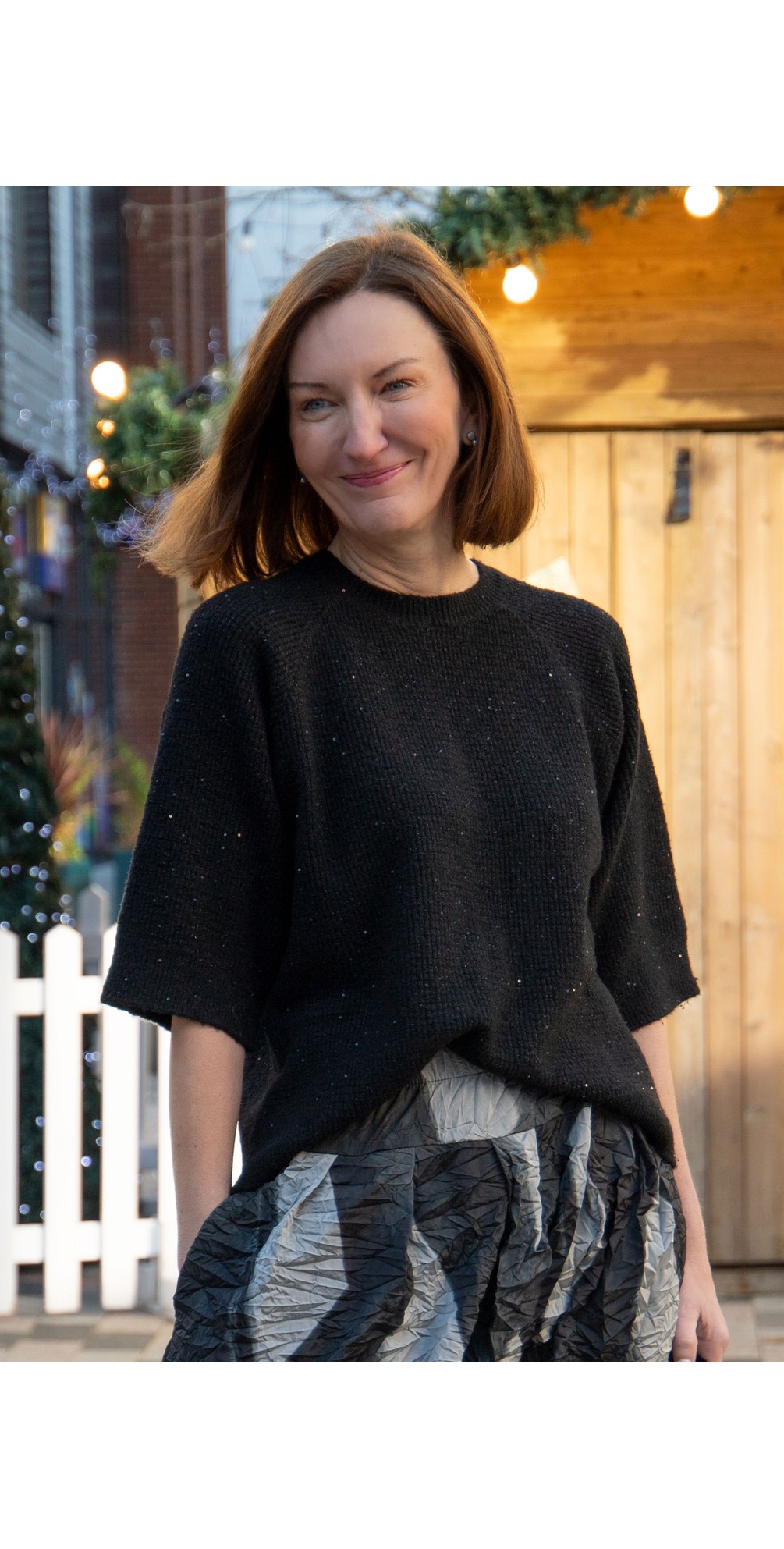 Masai Clothing's MaFarinna Sequin Top is a beautifully knitted piece with a hint of sparkle. Featuring a round neckline, short sleeves and simple cut this Masai knit is perfect for layering. We like it best paired with a crisp white shirt, pearls and a tulle skirt for relaxed glamour at its best.