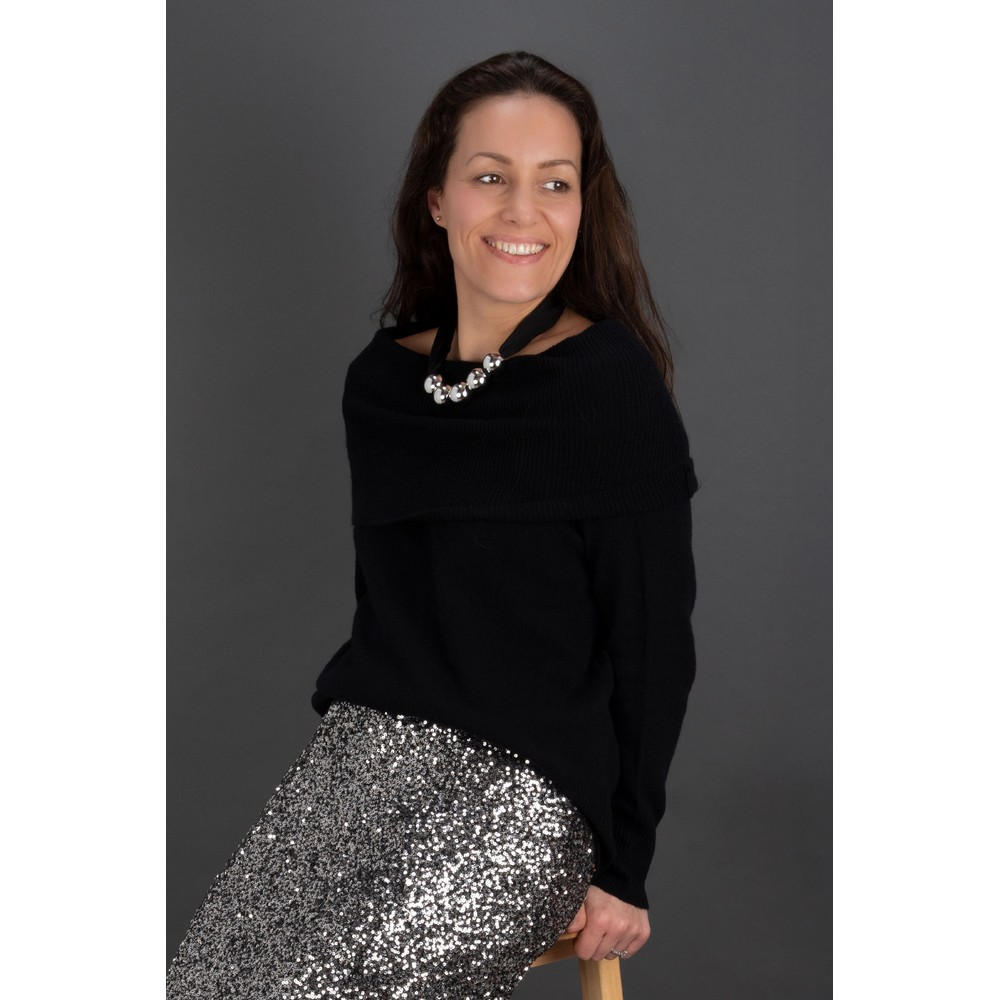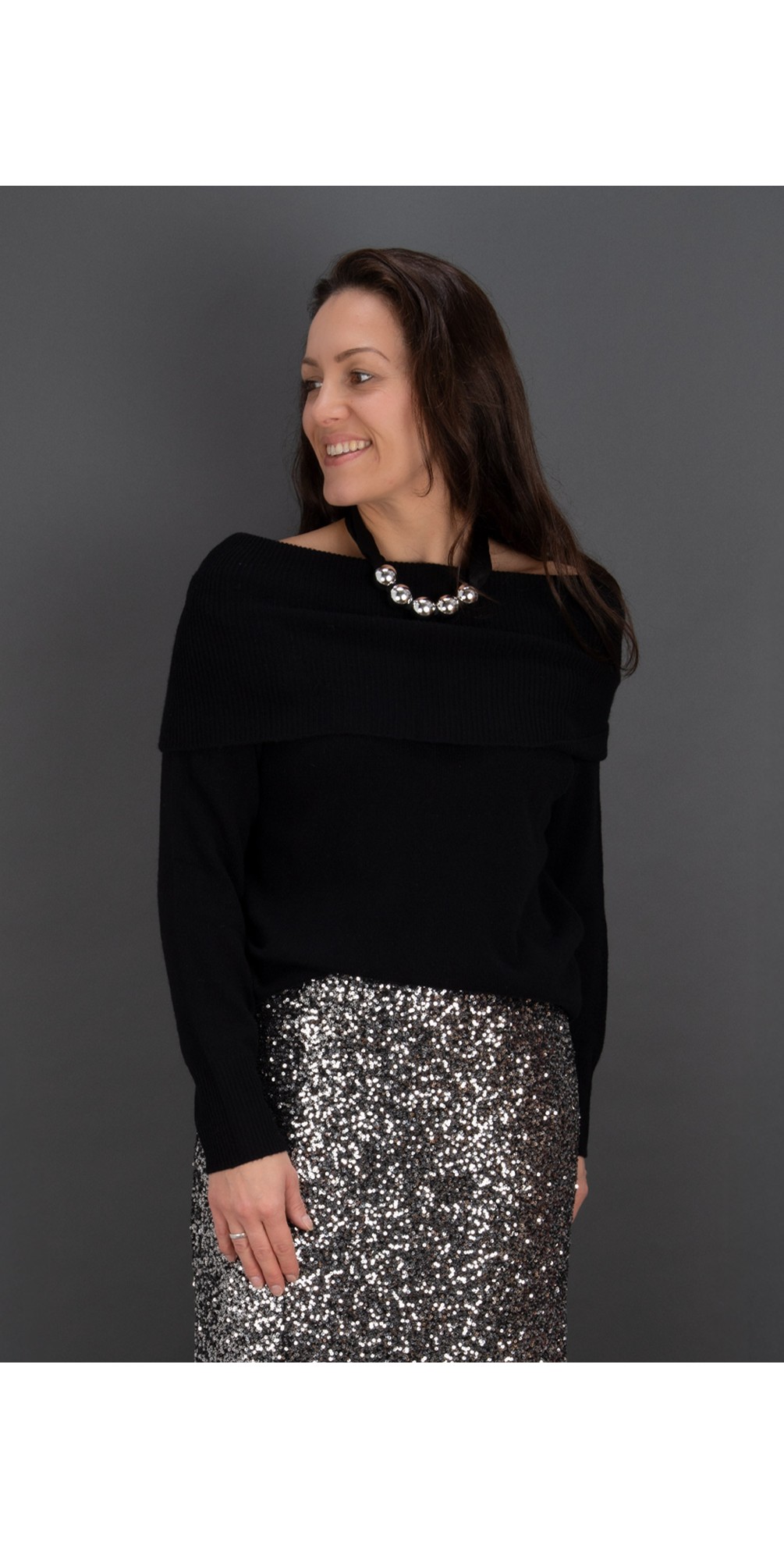 Masai Clothing MaFloraia Black Cashmere Touch Knit Top