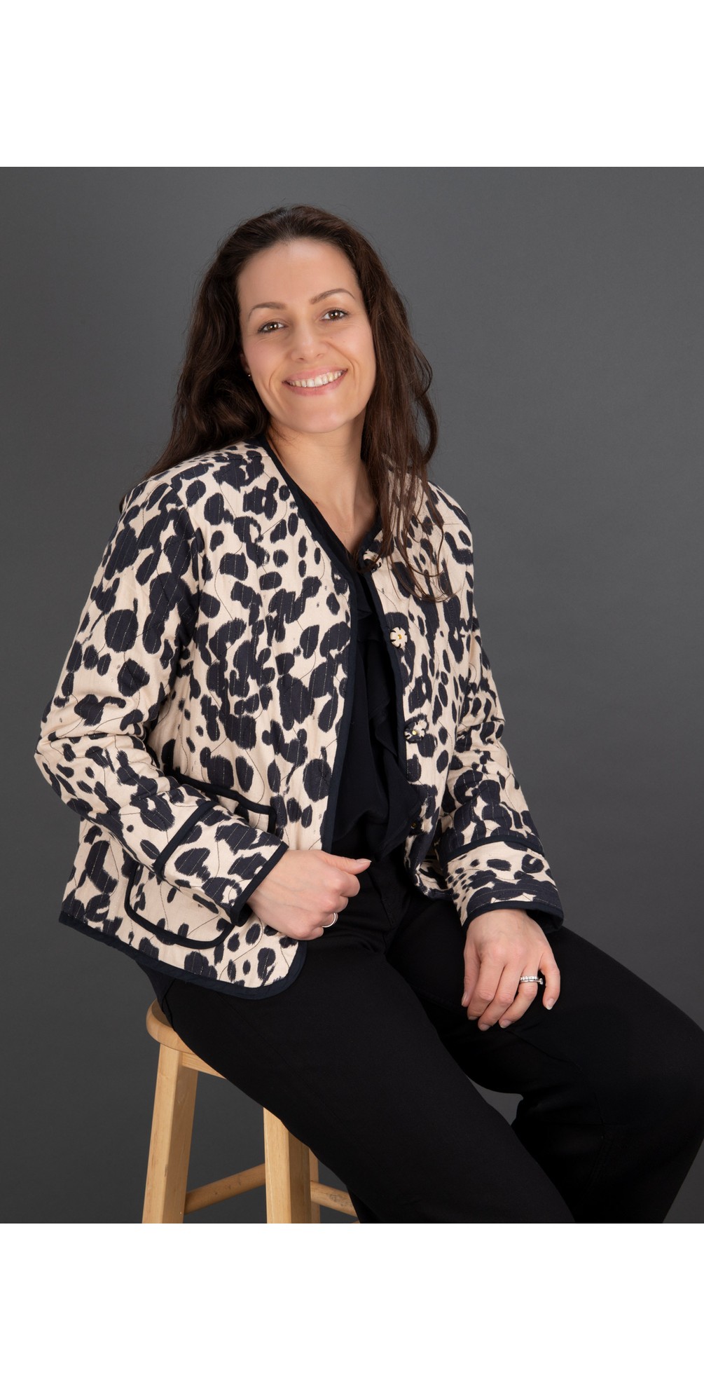 Some styles are love at first sight — like this women’s quilted leopard print jacket. Crafted with subtle golden threads, it brings a sophisticated shimmer to your wardrobe, creating an elegant statement piece for any outfit.