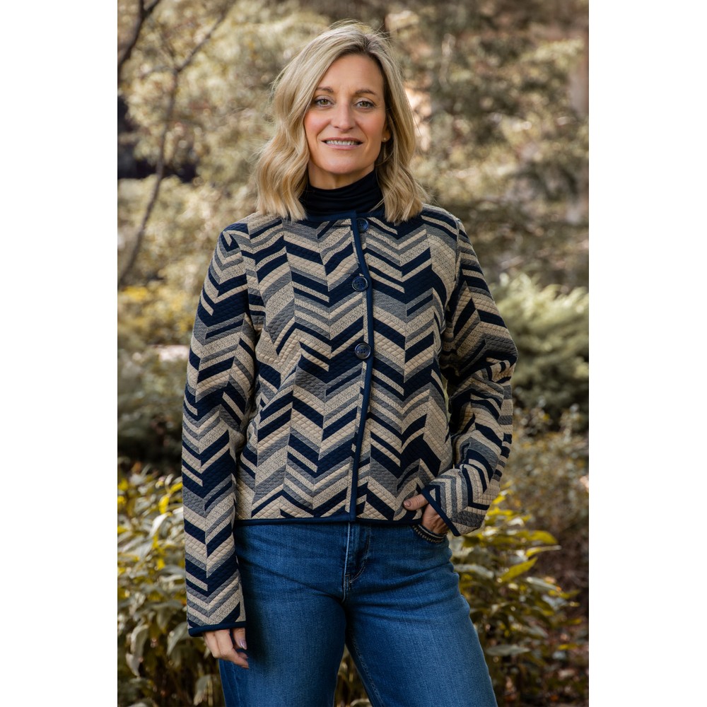 Elevate your everyday style with the Masai MaJuanta Jersey Jacquard Jacket — a perfect blend of elegance, comfort, and Scandinavian simplicity. Crafted from soft quilted jersey, this women’s jacquard jacket combines a graphic stripe pattern with a lightly structured silhouette, creating a look that’s both stylish and effortless.