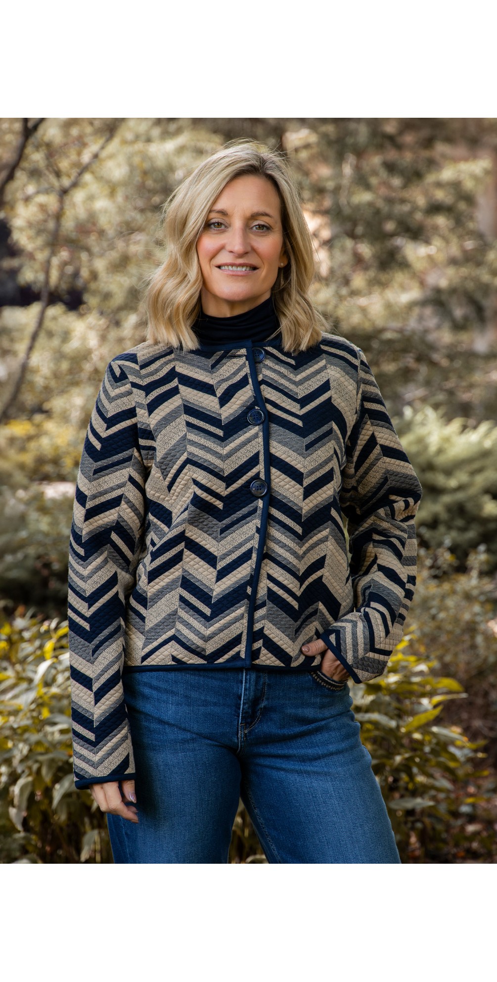 Designed with a straight cut, round neckline, and three front buttons, the MaJuanta Jacket offers a modern, versatile fit that works beautifully for both casual and smart occasions. The soft jersey jacquard fabric provides exceptional comfort, making it a go-to layering piece for any season.