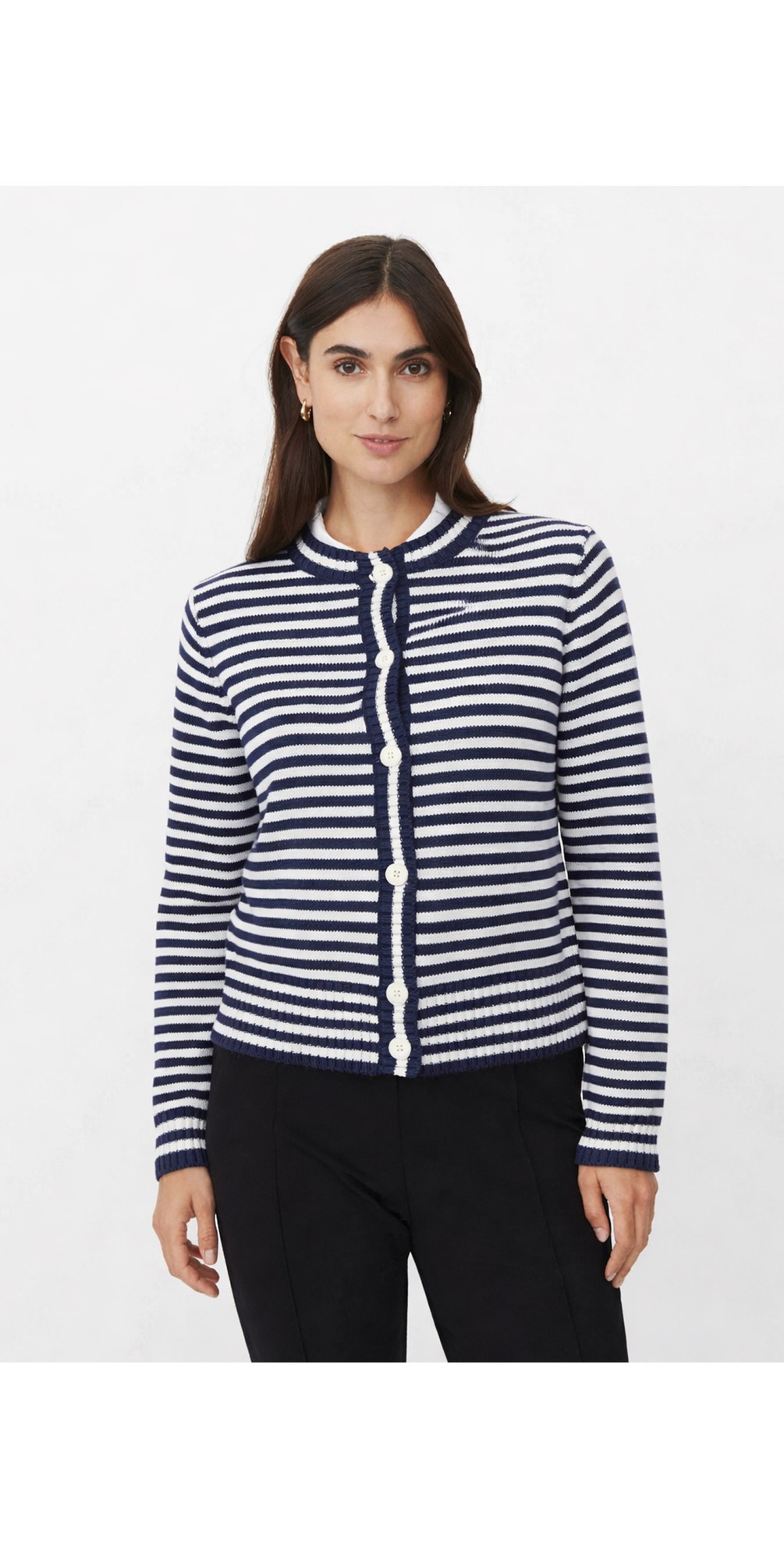 Knitted in a soft, comfortable fabric, the cardigan features a straight, flattering fit that sits neatly on the body. The round neckline and button-through front create a clean, feminine silhouette that’s easy to wear and easy to style. Perfect for layering over tops, dresses, or shirts, the MaLucanja striped cardigan is a sartorial must-have that every wardrobe needs.