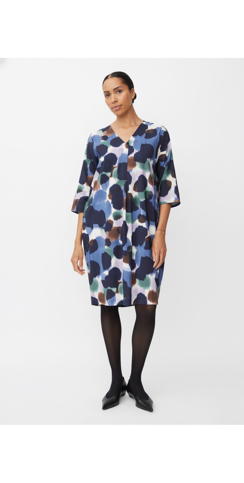 Step into elegance with Masai's MaNodetta Dress. Crafted from 100% viscose, this dress promises both comfort and style. The lightweight and breathable fabric drapes beautifully, ensuring you stay cool and chic all day long. featuring a flattering V-neckline, and 3/4 length sleeves, this dress is perfect for any occasion, from casual outings to more formal events.