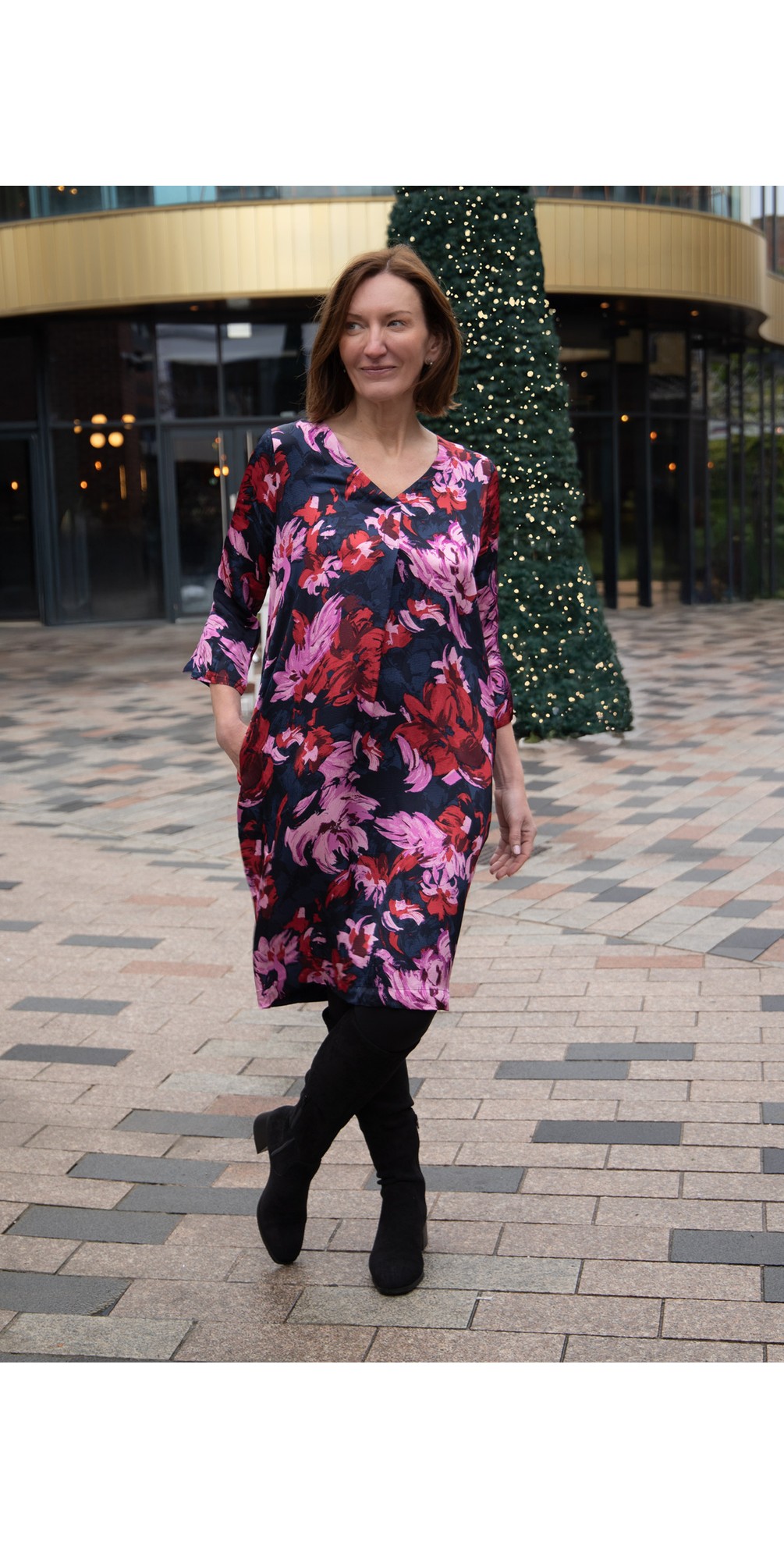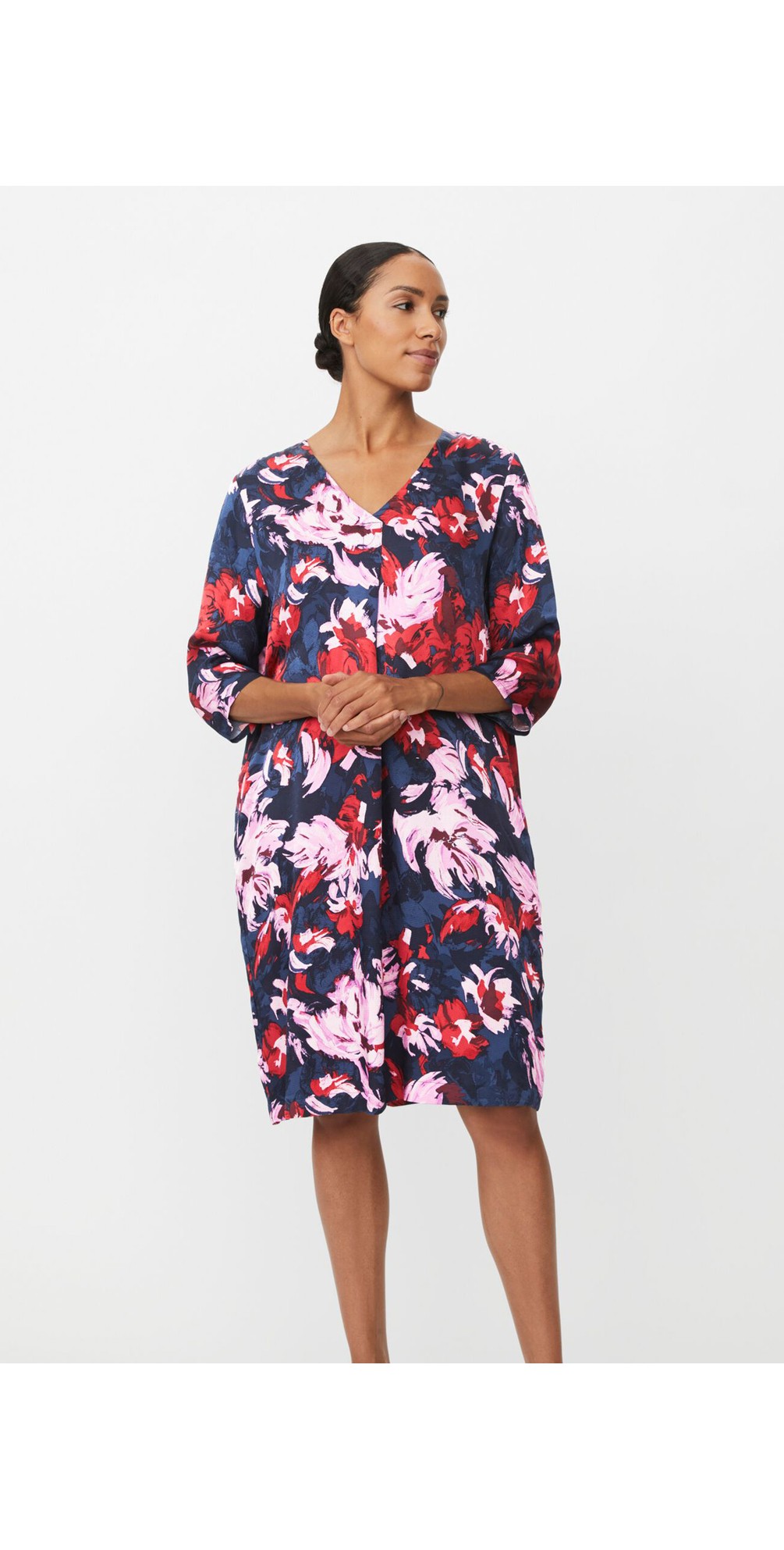 Effortless and feminine, the Masai Nodetta Dress is crafted from soft viscose crepe that drapes beautifully with every movement. Designed in a flattering A-shape silhouette, it features a V-neckline, long sleeves, and subtle pleat detailing for gentle flow and ease. The artistic print adds a modern, stylish touch — perfect for dressing up or down through the seasons.
