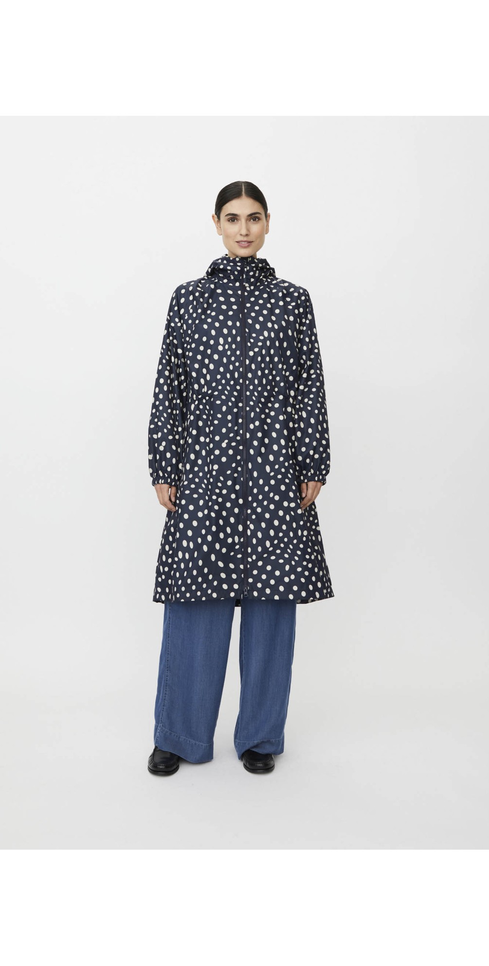 Crafted in water-resistant fabric and cut in a relaxed A-shape silhouette, the Masai MaTrina Print Raincoat offers comfortable everyday wear without compromising on style. Designed with a protective hood, secure fastening, and practical pockets, it layers beautifully over your favourite outfits — from casual jeans to tailored dresses. Perfect for city days or weekend walks, this waterproof raincoat combines function with feminine flair
