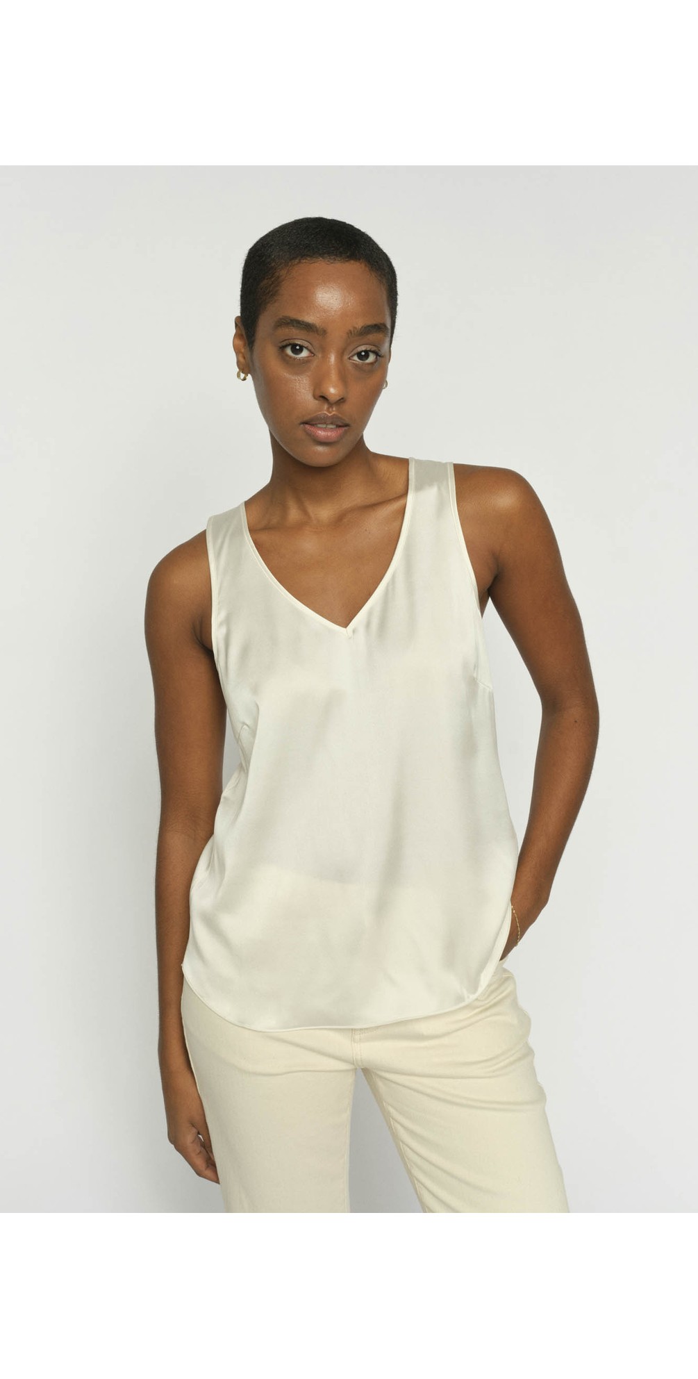 Mos Mosh Astrid V-Neck Ecru Silk Tank Top