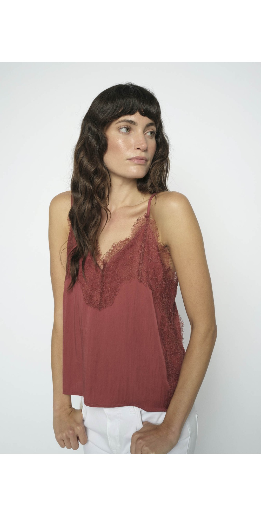 Elevate your wardrobe essentials with the MMRiela Annie Top in a gorgeous, rich rust —a premium lyocell camisole designed for effortless style and all-day comfort. Crafted by Mos Mosh, this elegant women’s cami blends soft, breathable lyocell fabric with delicate contrast lace detailing at the neckline, back, and sides for a refined, feminine finish.