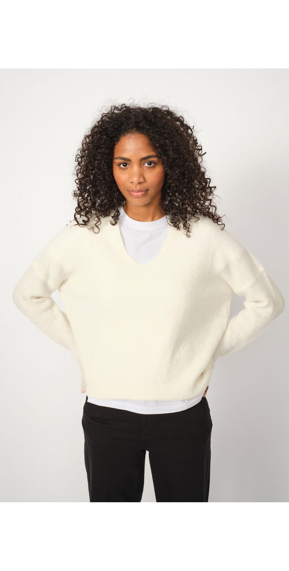 Mos Mosh Thora V-Neck Ecru Knit Jumper