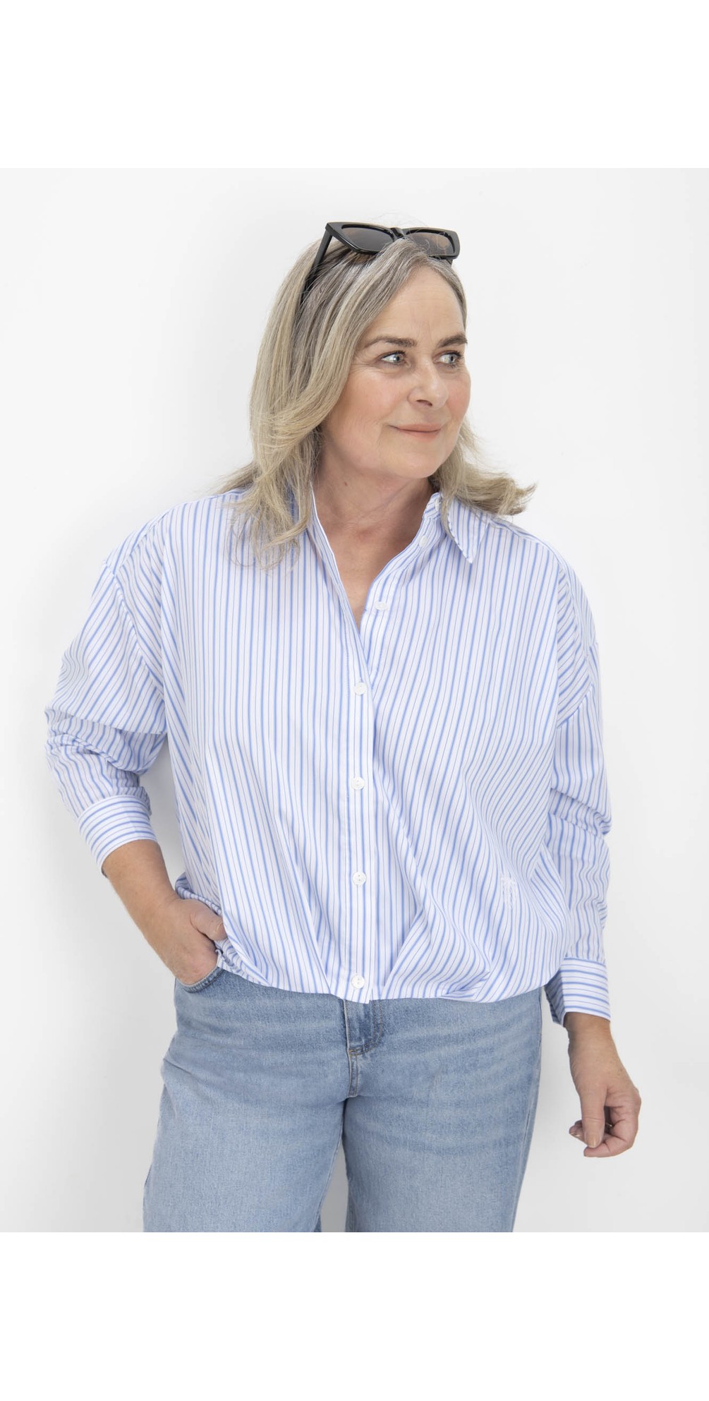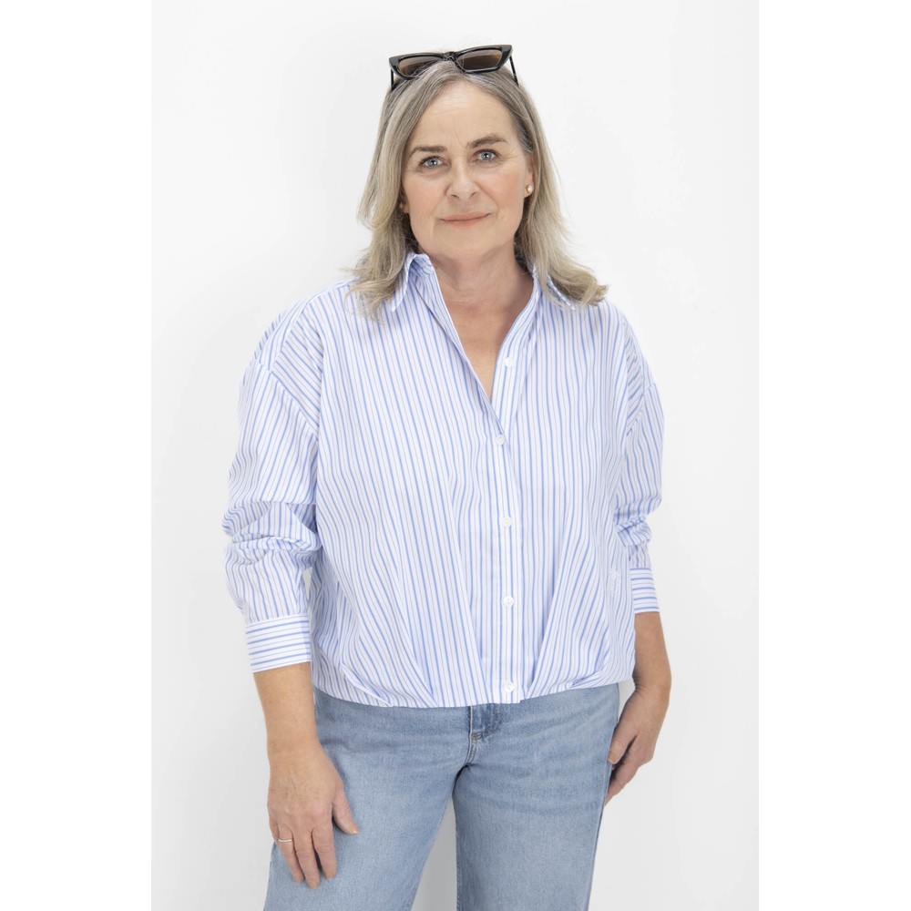 This Blouson Stripe Cropped Shirt from Noen brings a fresh, modern twist to a timeless classic. Designed with a classic collar and button fastening through the front, it blends tailored detailing with a relaxed, contemporary shape. The full-length sleeves are finished with structured cuffs for a polished look, while the cropped length and elasticated hemline create a softly blouson silhouette that’s easy to wear and endlessly flattering. Finished with an all-over stripe, this shirt feels crisp and effortless — perfect for elevating everyday outfits.