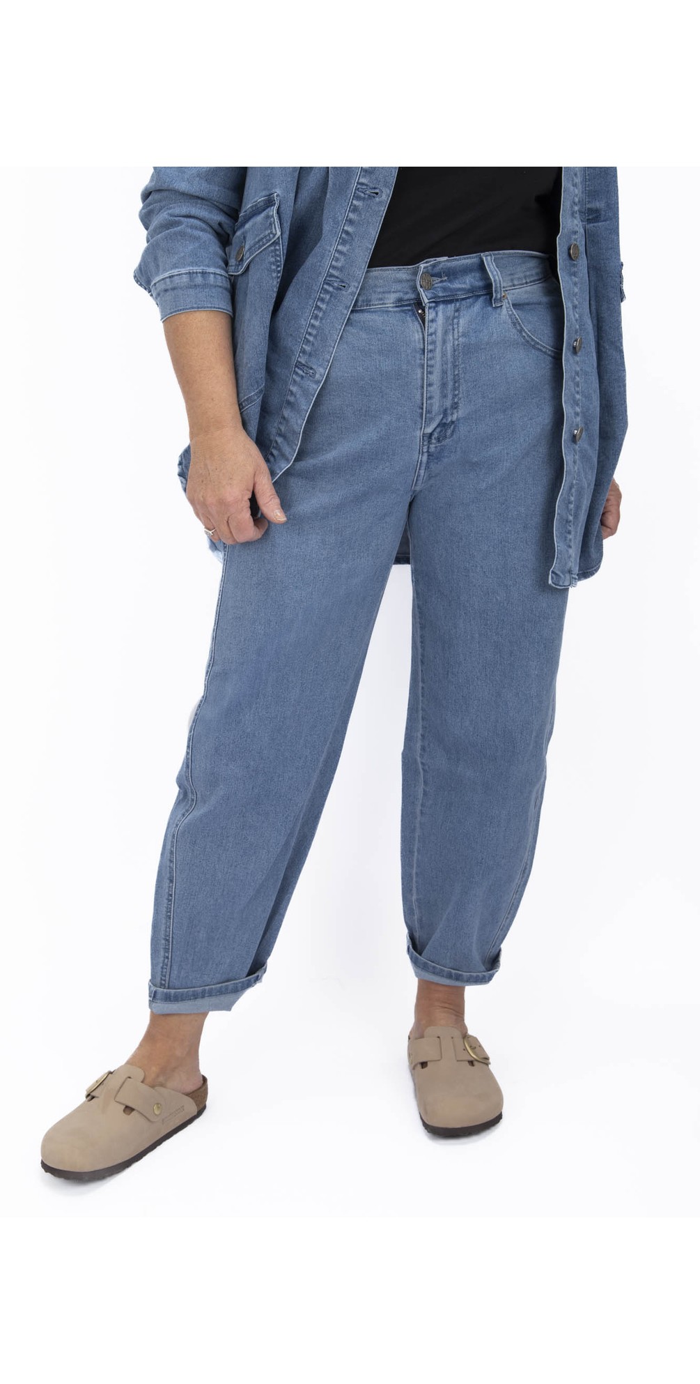 Crafted from quality denim with a structured yet comfortable fit, these jeans sit relaxed through the thigh and gently taper towards the ankle — creating the signature barrel-leg shape that’s both on-trend and flattering. Practical front and back pockets add everyday functionality, while the classic zip and button fastening keeps the look clean and timeless. Pair them with oversized knitwear or tailored jackets for an elevated casual outfit that works from daytime errands to weekend gatherings.