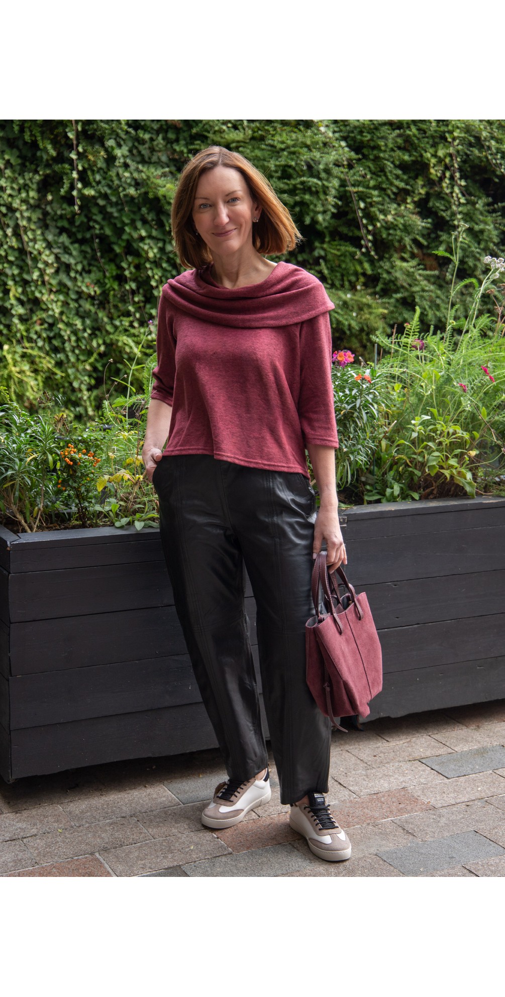 The Leather Balloon Trousers from NOEN are a staple for your autumn wardrobe. They feature an elasticated waist with a zip fastening, a balloon-style leg, and real leather that will last for many years in your capsule wardrobe. Style them with a jumper in the day, or dress them up with a blouse and jacket in the evening.