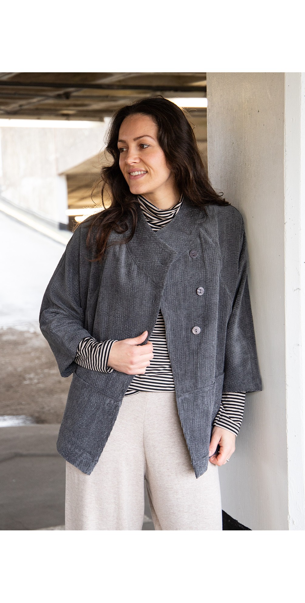 NOEN Soft Corduroy Charcoal Asymmetric Collar Jacket