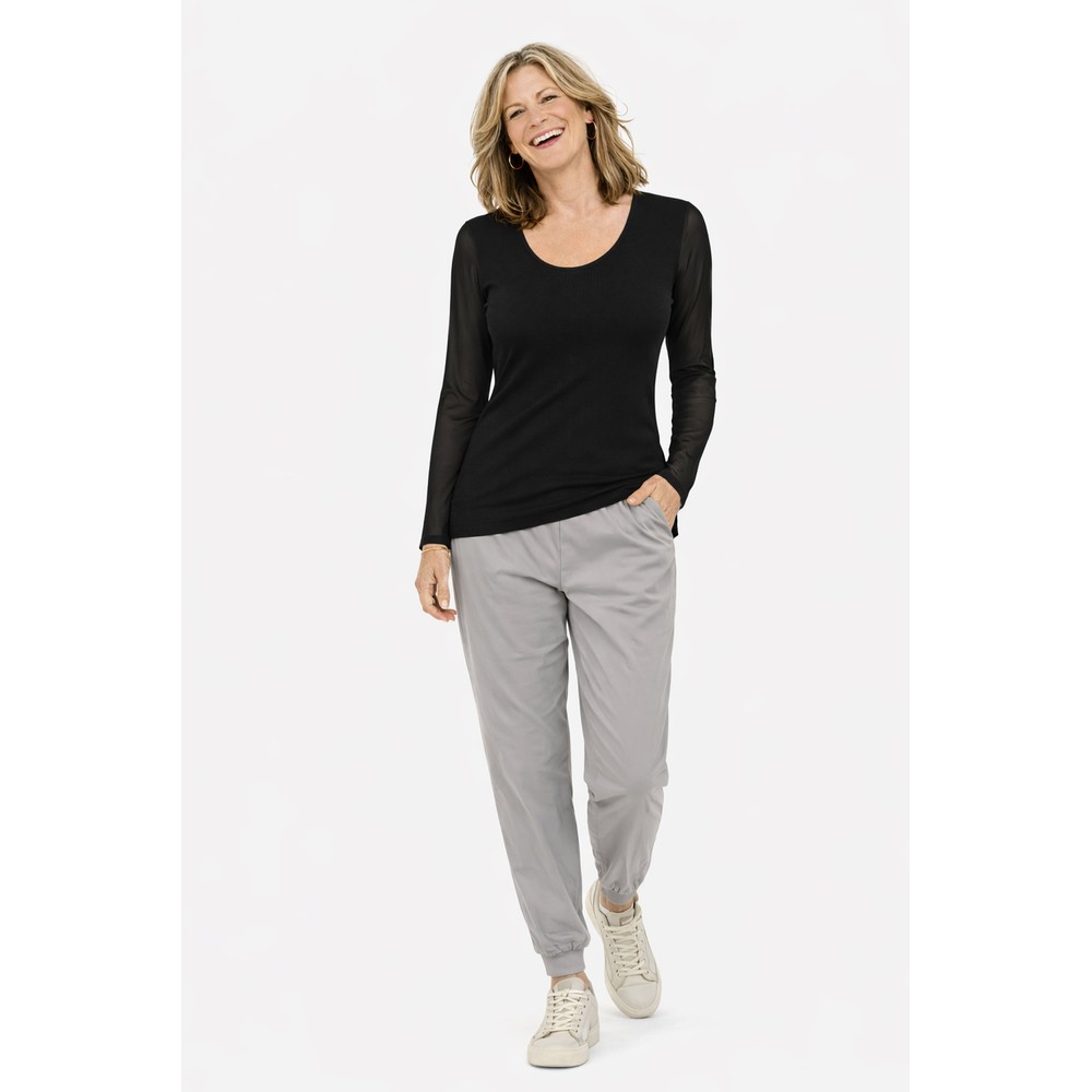 Naya Naya Black Jersey Mesh Sleeve Top