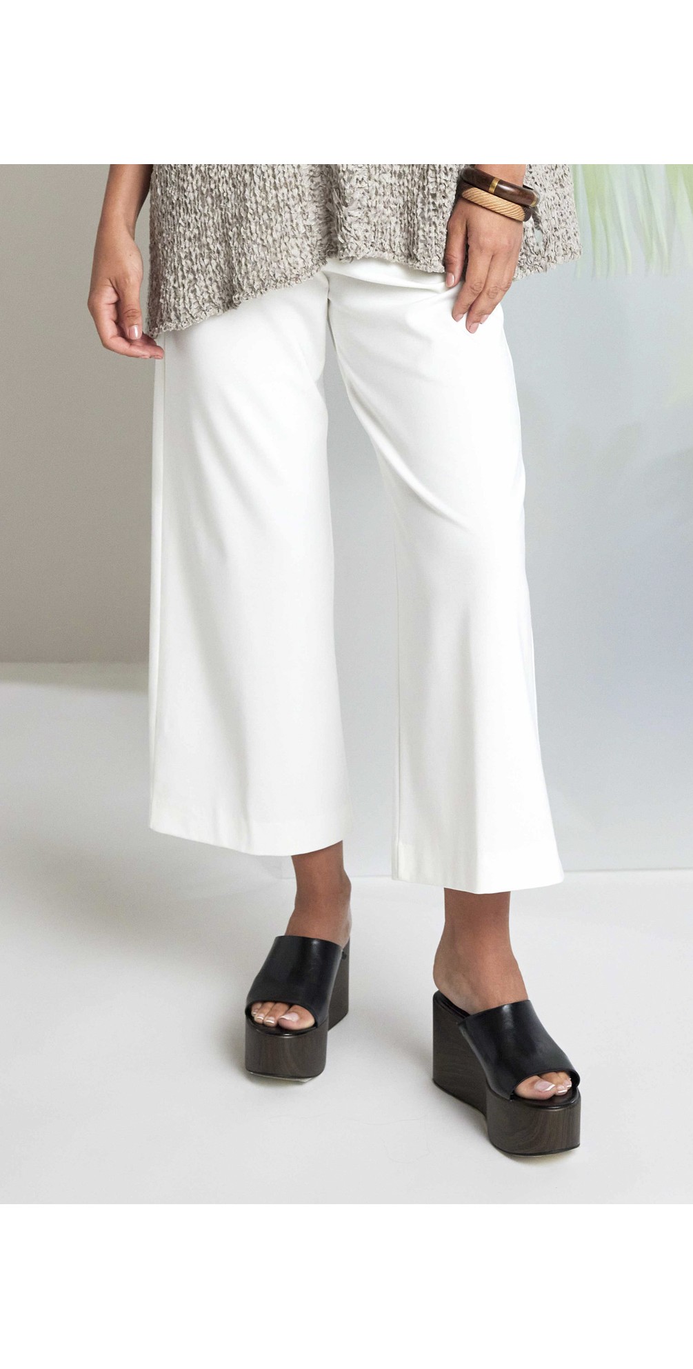 Introducing the Naya Wide Leg Soft Pull Up Trouser With Side Pocket — a beautifully relaxed wardrobe essential that blends effortless comfort with contemporary style. Designed in a wide-leg silhouette for a flattering, fluid drape, these trousers feature a soft pull-up waist with elasticated ease and practical side pockets that add everyday functionality. The relaxed cut and gentle movement make them perfect for pairing with simple tops, relaxed shirts or lightweight sweaters, creating an understated yet refined look you’ll return to season after season.