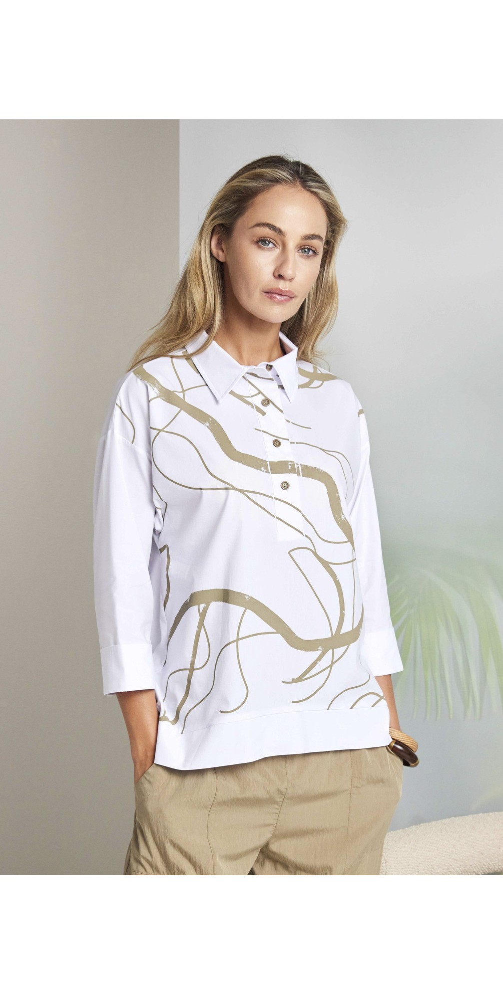 Refresh your wardrobe with the Naya Print Contrast Cuff Top, a stylish and versatile piece crafted for effortless everyday wear. This standout top features eye-catching print-contrast detailing on the cuffs and trim, adding a contemporary twist to a classic silhouette. Made from soft, breathable fabric, it feels comfortable against the skin and offers easy all-day wearability. The relaxed fit and clean lines make it simple to style with tailored trousers, skirts, or denim, while the unique contrast touches add modern charm and visual appeal. Perfect for casual weekends, smart-casual days at the office, or layered looks, this top pairs beautifully with both bold and neutral pieces in your wardrobe.