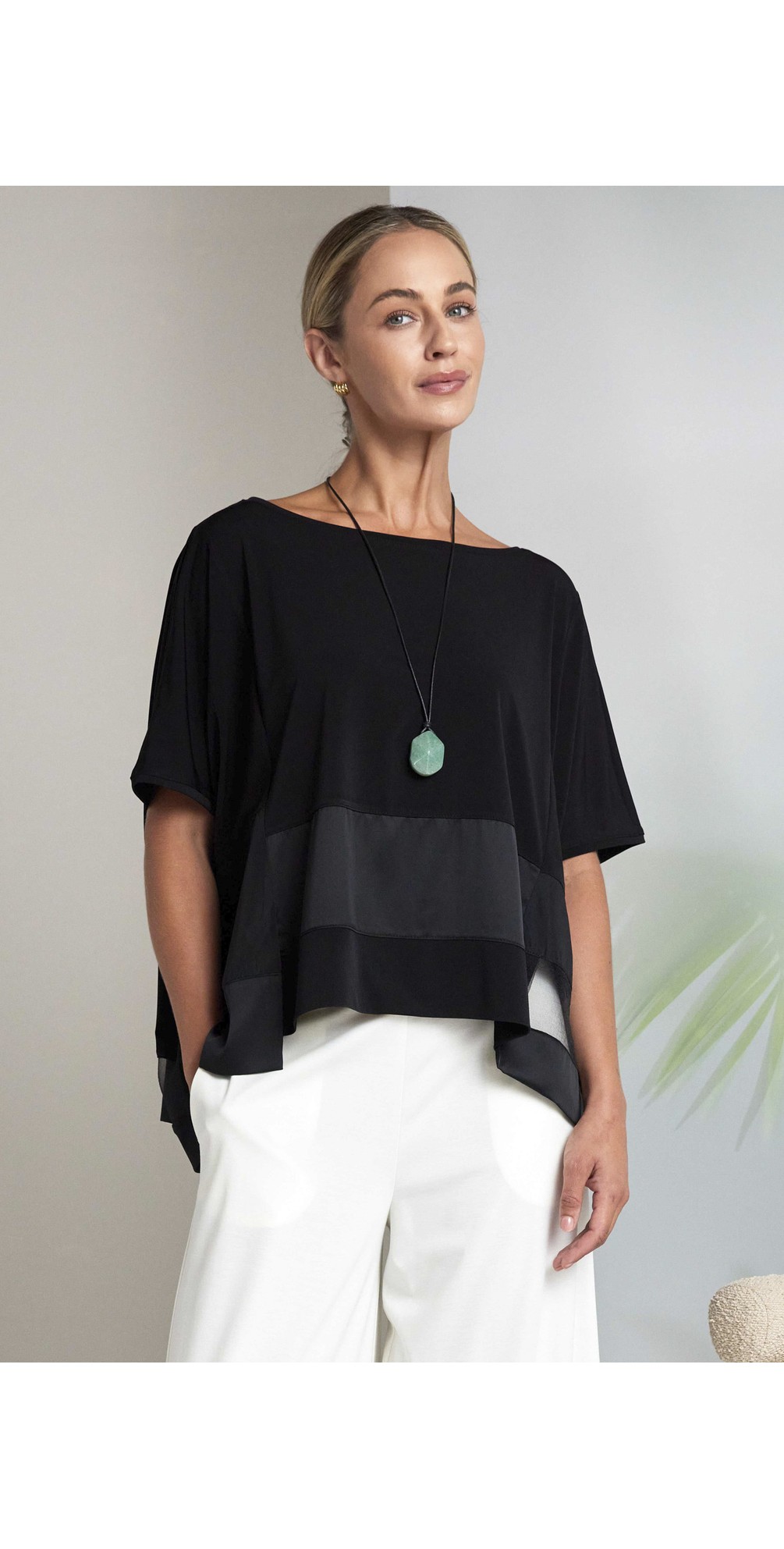 Refresh your wardrobe with the Naya Square Contrast Top, a modern and versatile essential that combines style with effortless comfort. This chic top features striking contrast square detailing that instantly elevates your look, making it ideal for both casual and polished outfits. The relaxed silhouette and soft, breathable fabric ensure all-day comfort. Whether layered under a jacket or worn on its own, this top delivers contemporary appeal and wardrobe-ready versatility.