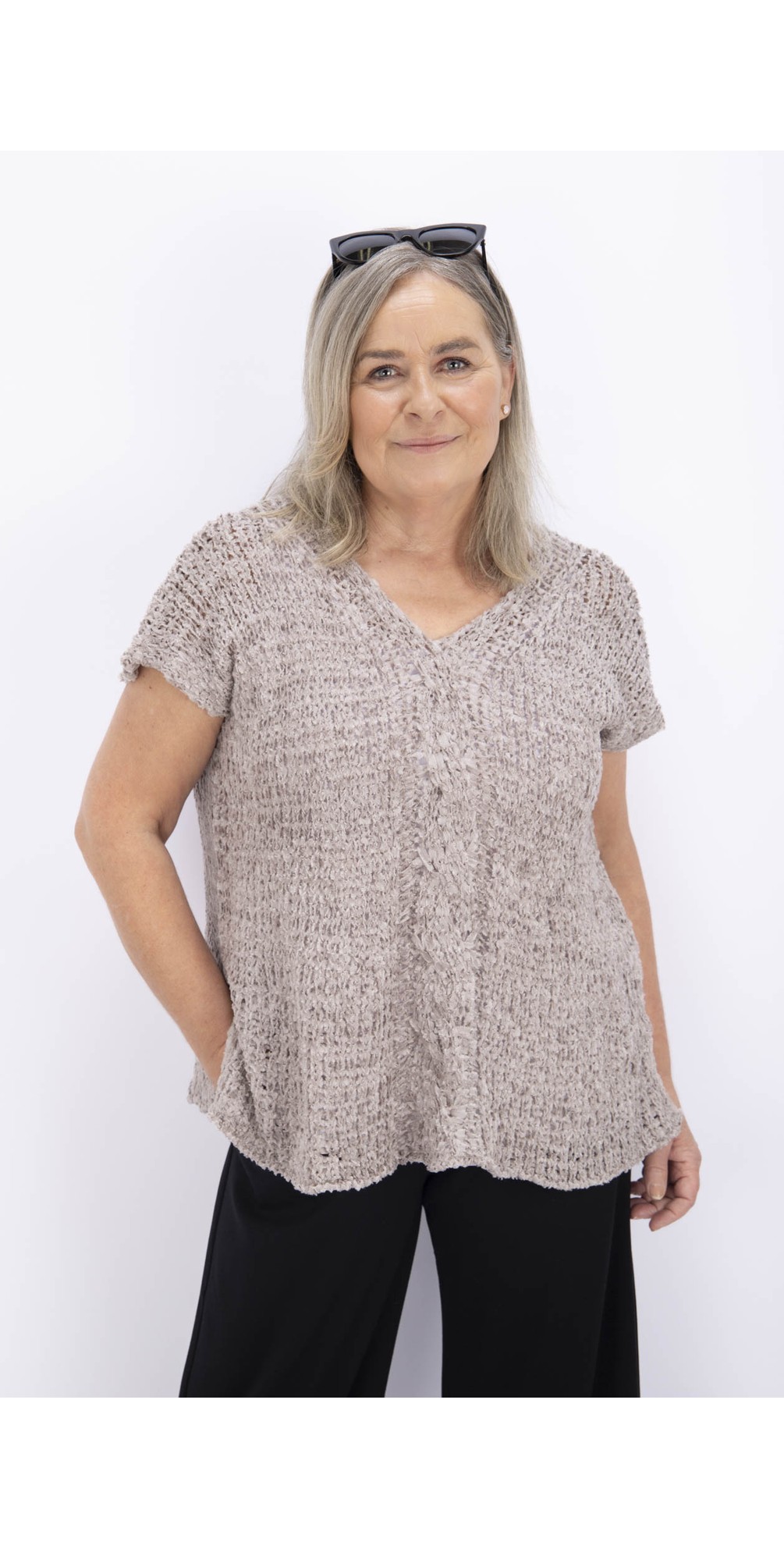 The Naya Waffle Effect Knit is a modern wardrobe essential, crafted with an open waffle-knit texture, short sleeves, and a flattering V-neckline. The relaxed silhouette drapes loosely over the body, creating an easy, contemporary fit that works across seasons. Lightweight yet stylish, this textured knit top is perfect for layering over camisoles or pairing with jeans or tailored trousers for a clean, modern Naya look. A versatile piece that blends comfort, texture, and understated sophistication.