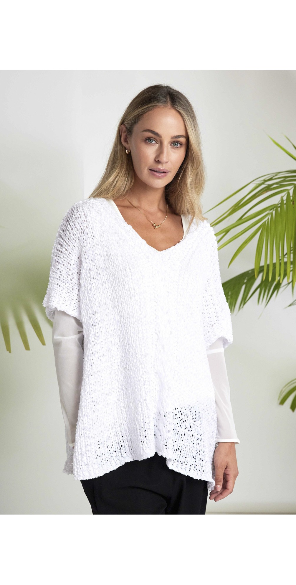 Introducing the Naya Waffle Effect Knit, a modern essential designed for effortless layering. Featuring short sleeves, an open waffle-knit texture and a flattering V-neckline, this piece drapes loosely over the body for a relaxed, contemporary silhouette. Perfect for layering through the season, it styles beautifully with jeans or trousers for a clean, modern Naya look.