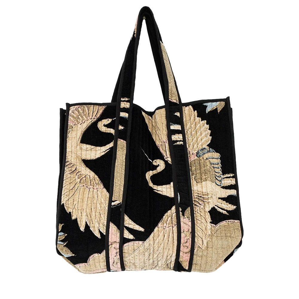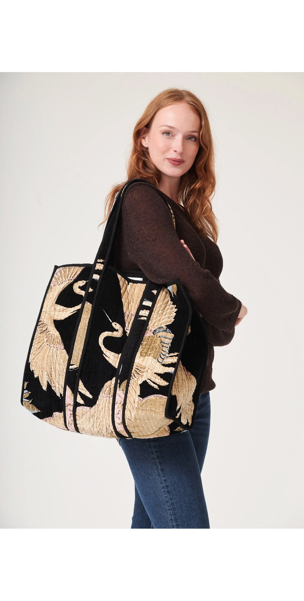 One Hundred Stars Crane Black Large Velvet Tote Bag