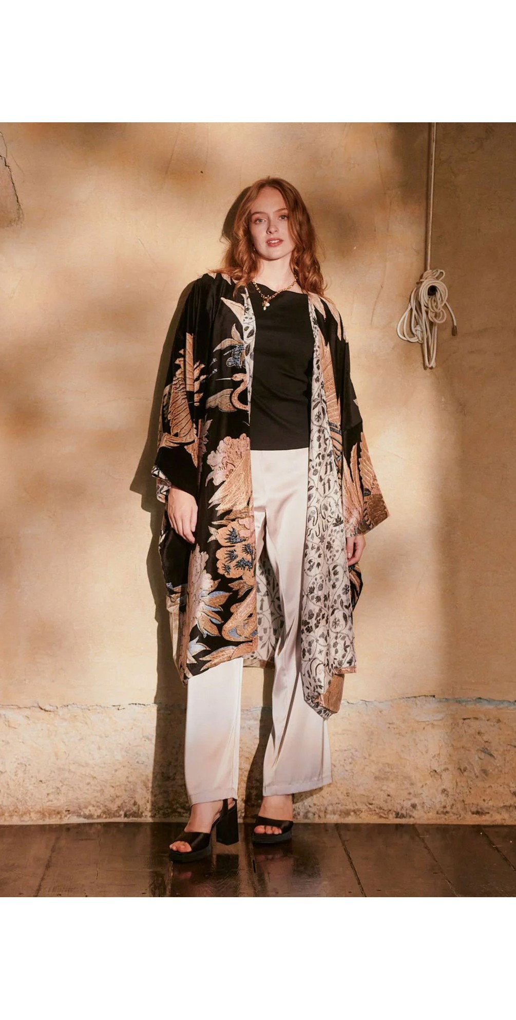 Crafted from soft cotton velvet with a complementary printed lining, this luxury velvet gown is designed to showcase the full beauty of our bold signature prints. The gown features loose-fit sleeves, hidden side pockets, and a flowing silhouette, making it both elegant and comfortable for special occasions. This women’s printed velvet gown is a timeless, luxurious piece that combines artistry, sophistication, and comfort, making it a standout addition to any special occasion wardrobe.