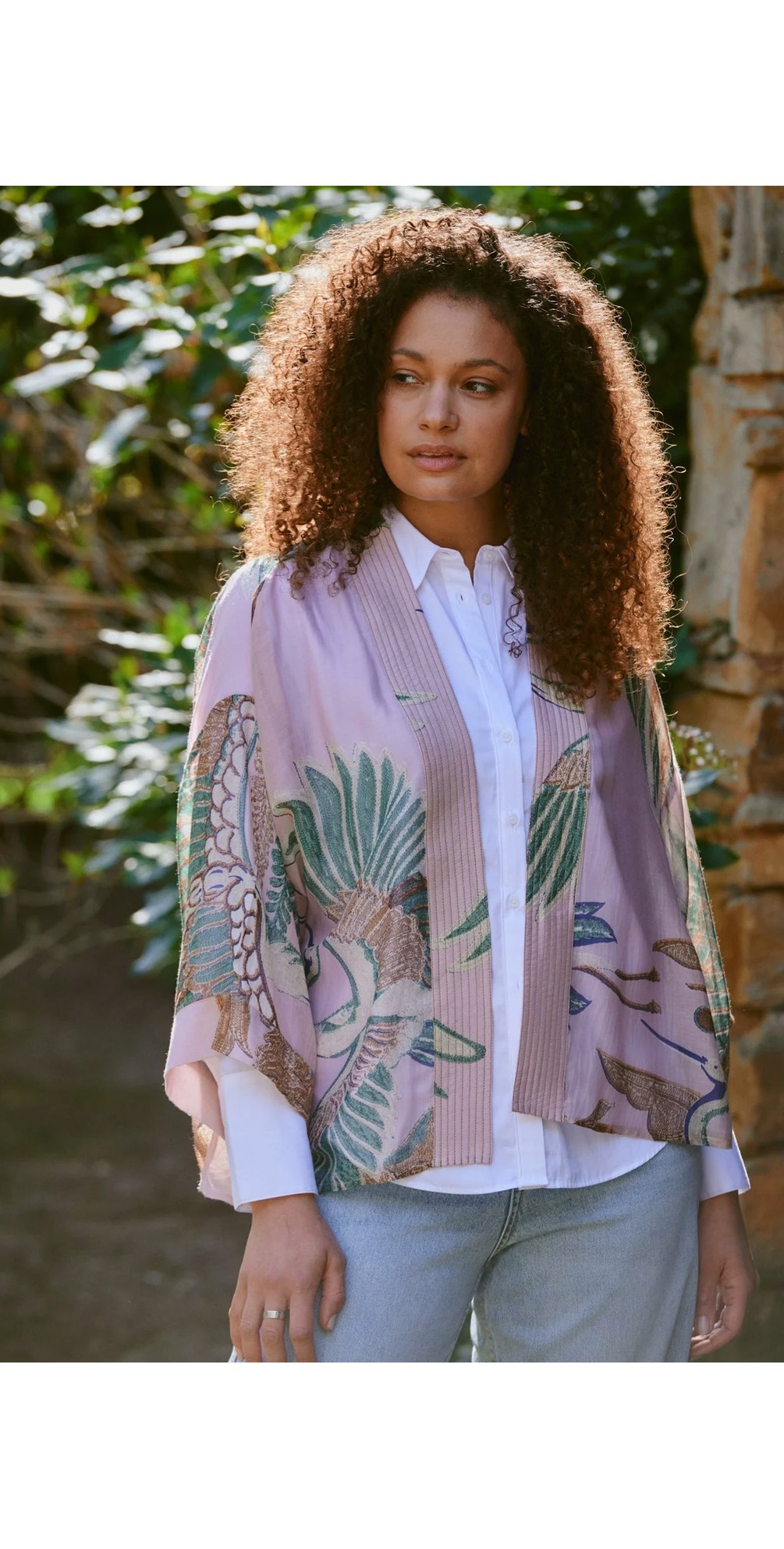 One Hundred Stars Crane Plaster Pink Short Kimono
