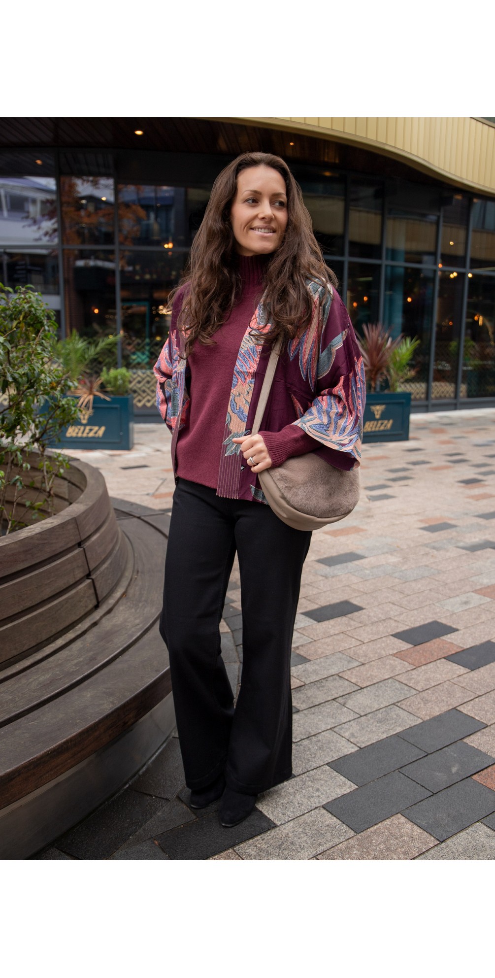 • Versatile silk-effect kimono jacket for casual or polished outfits