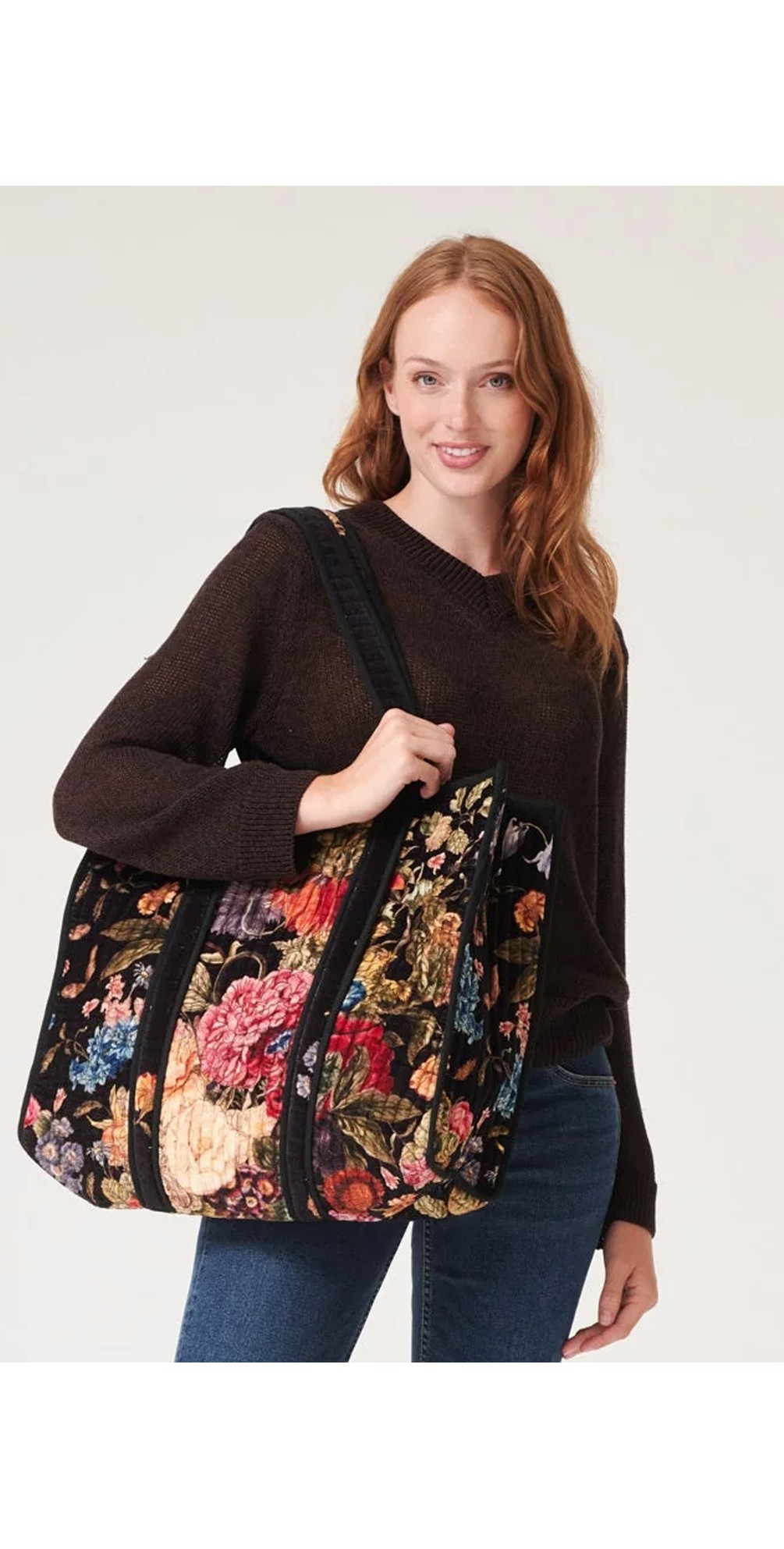 One Hundred Stars Large Primula Black Velvet Tote Bag