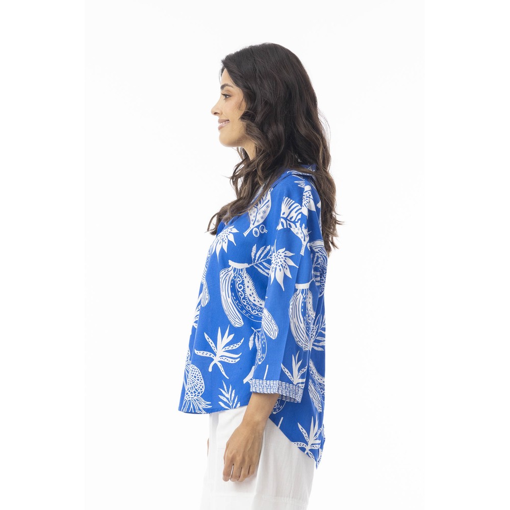 Made from lightweight, breathable fabric, the top feels soft and comfortable while offering a relaxed, flattering silhouette. It features a classic collar with a button-front detail for a polished yet easy-going look, and long sleeves that provide added coverage while maintaining a light, airy feel. The fluid drape enhances movement and wearability, creating an elegant finish from every angle. Designed to sit neatly at the hip, this printed top pairs effortlessly with tailored trousers, denim, or skirts for an easy daytime-to-evening outfit.