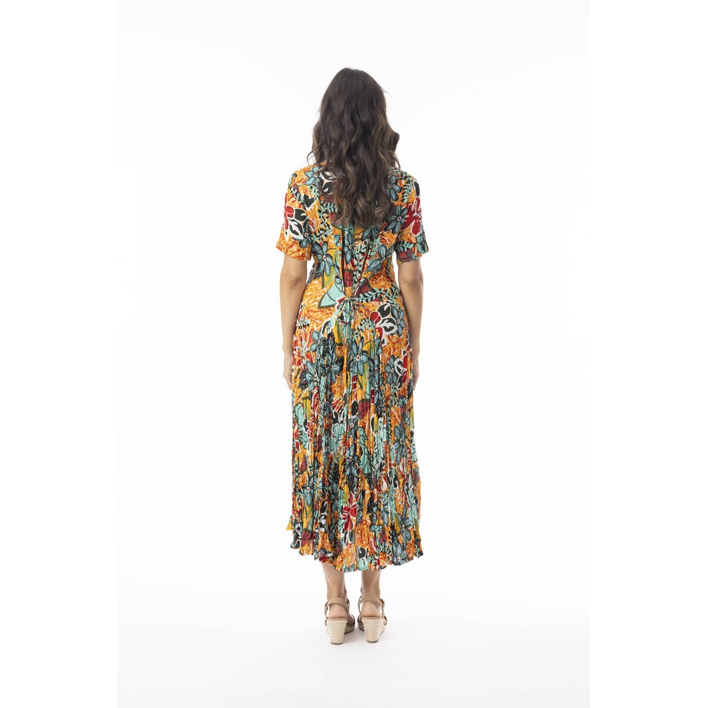 Orientique Guaratiba Print Godet Dress – Midi Summer Dress in Rayon Crepe