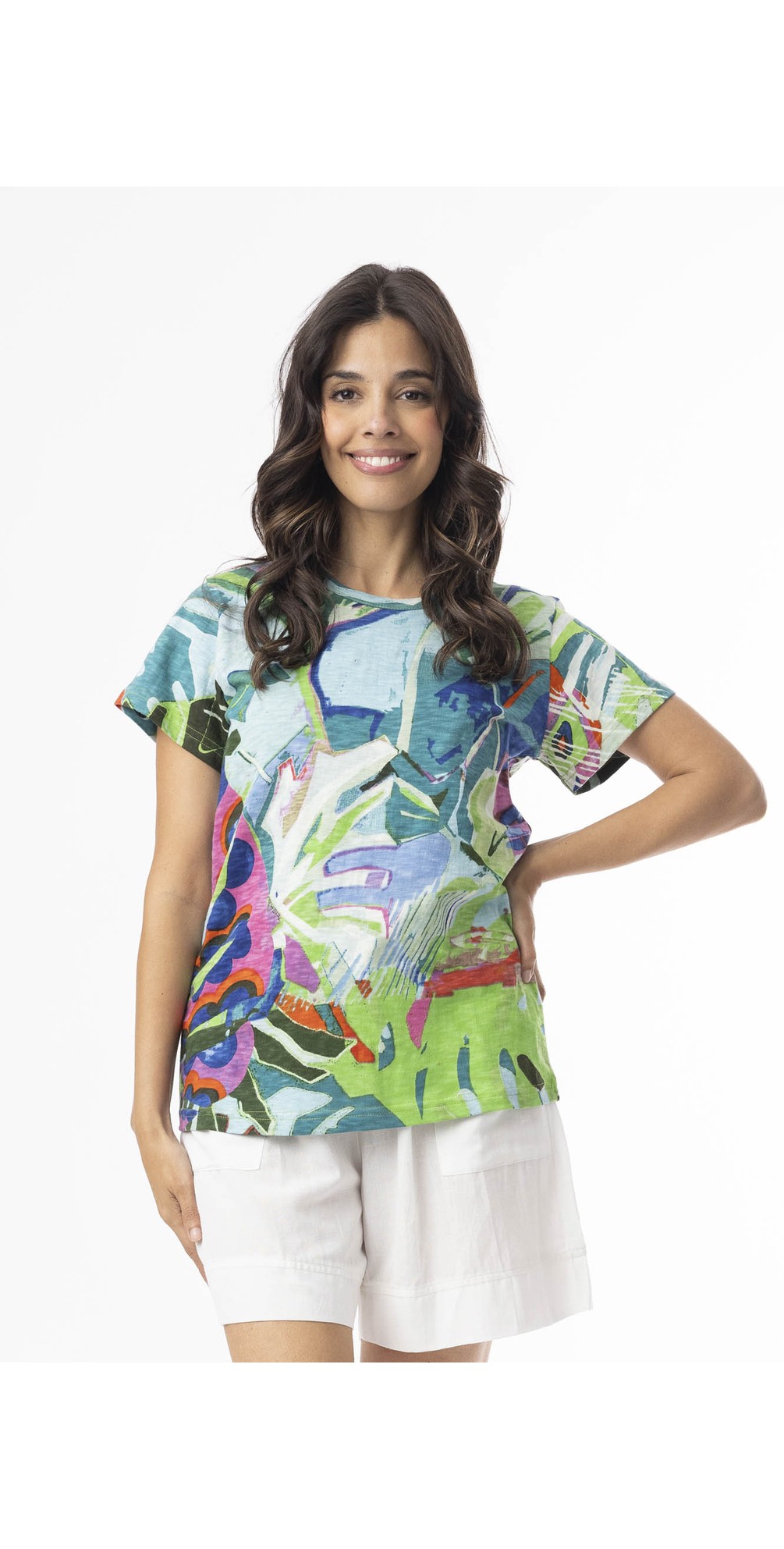 Crafted from 100% organic cotton, this lightweight t-shirt offers a soft, breathable feel that’s perfect for warm-weather wear. The classic crew neckline and relaxed fit create an easy, flattering silhouette, while short sleeves add to its laid-back, versatile appeal. Orientique t-shirts are known for their colourful prints and breathable natural fabrics, making them ideal for summer styling