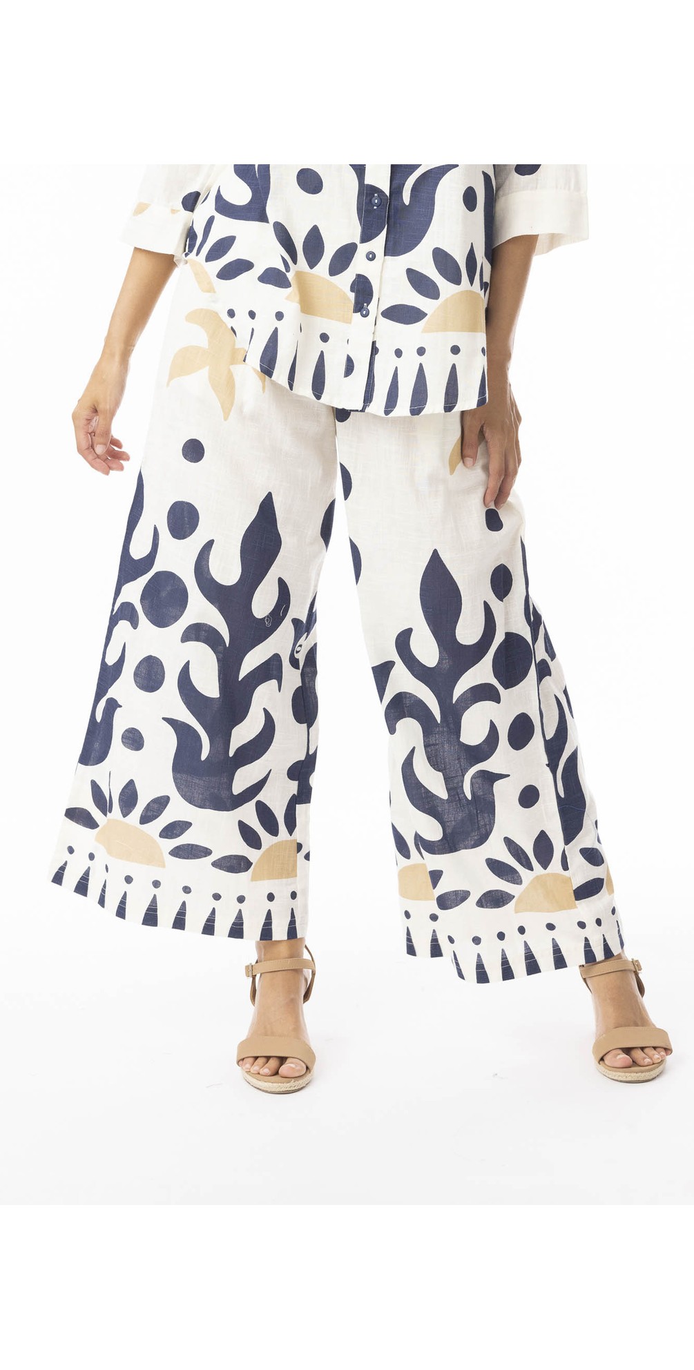 Crafted from lightweight, breathable 100% cotton, these printed pants feel soft and cool against the skin — perfect for warm-weather days. The elasticated waistband ensures a comfortable fit, while the wide-leg cut offers relaxed movement and flattering drape. Practical side pockets add everyday functionality without compromising on style. Pair them with simple tees, linen tops, or coordinated pieces for easy, elevated outfits.