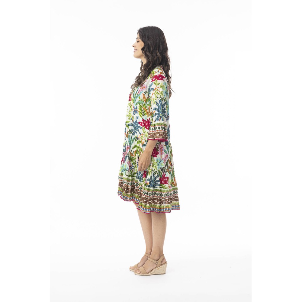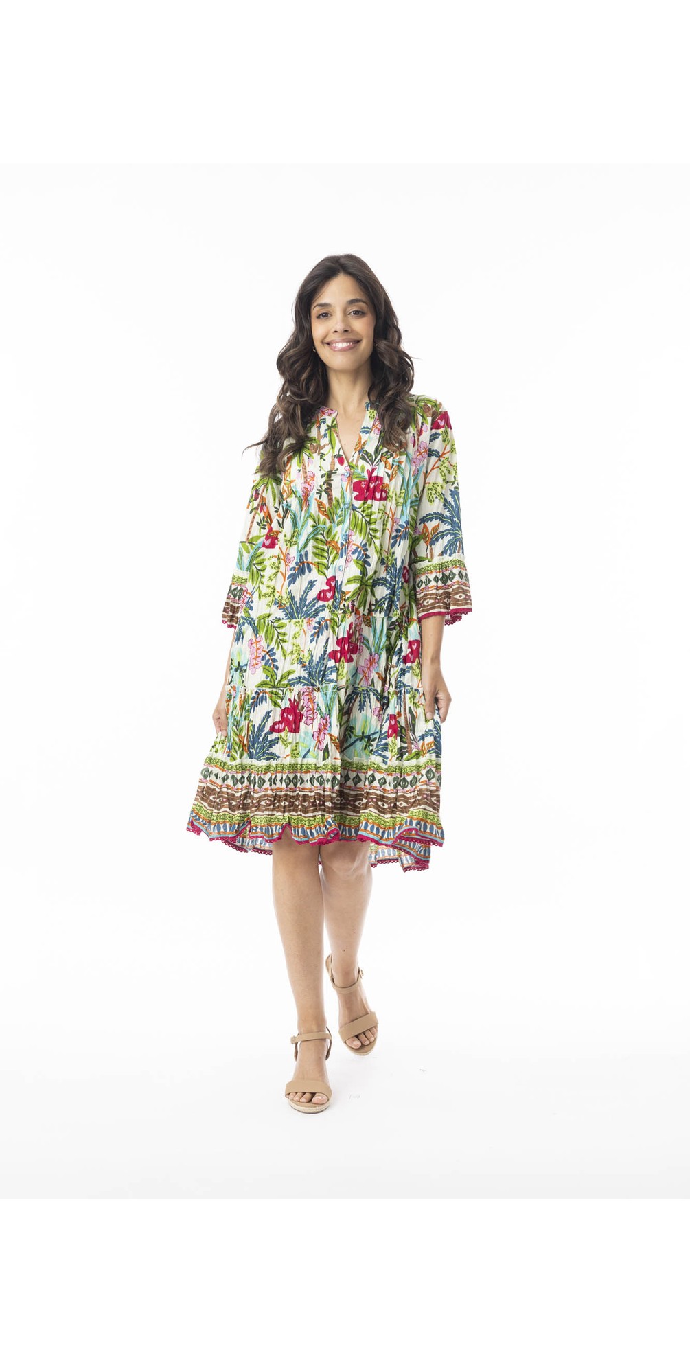 Finished with playful detailing such as tiered or softly gathered elements, this dress moves beautifully with the body. Available in a variety of vibrant prints, it’s ideal for holidays, casual days, or effortless everyday styling.