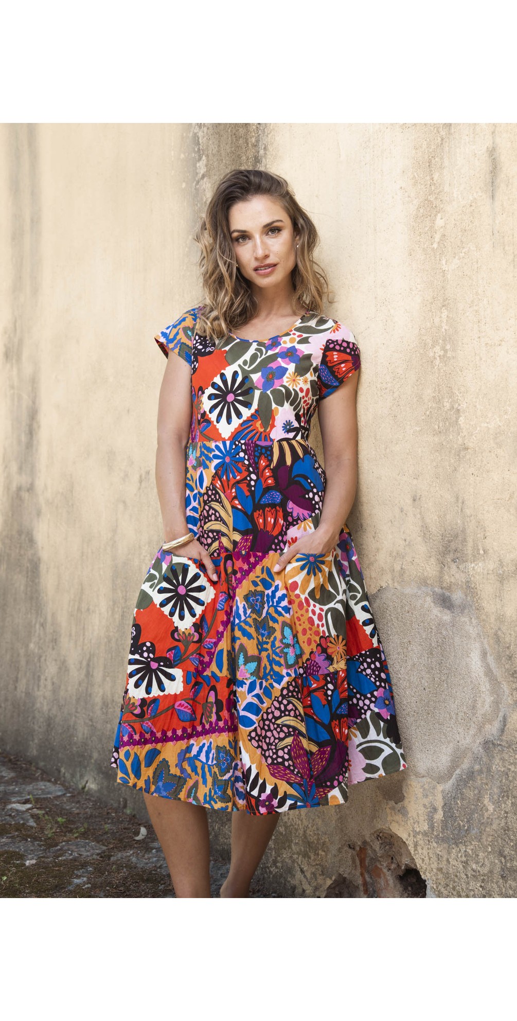 Salvador Print Flared Dress With Pockets