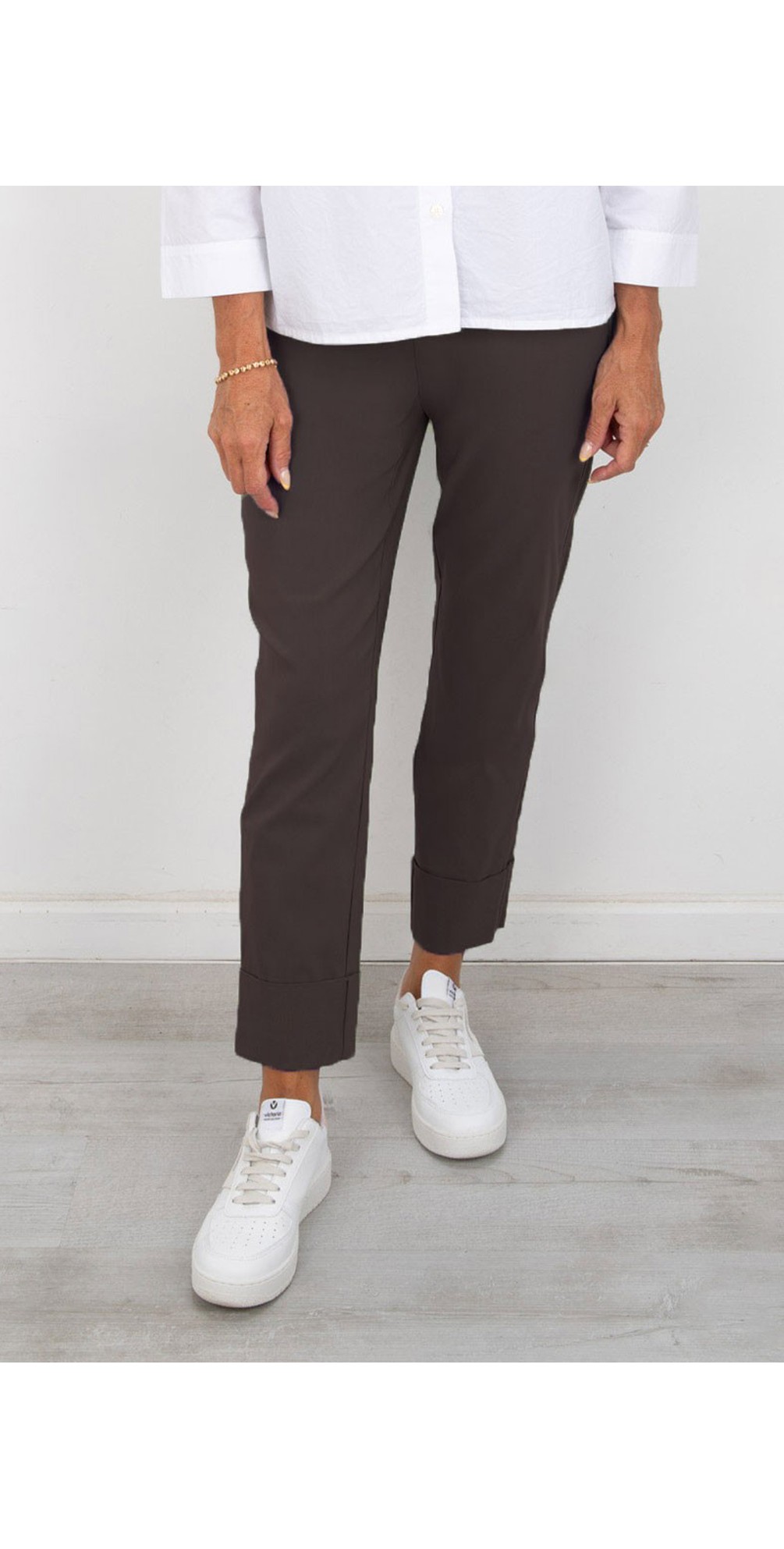 Bella 09 Dark Brown Ankle Length Crop Cuff Trouser
