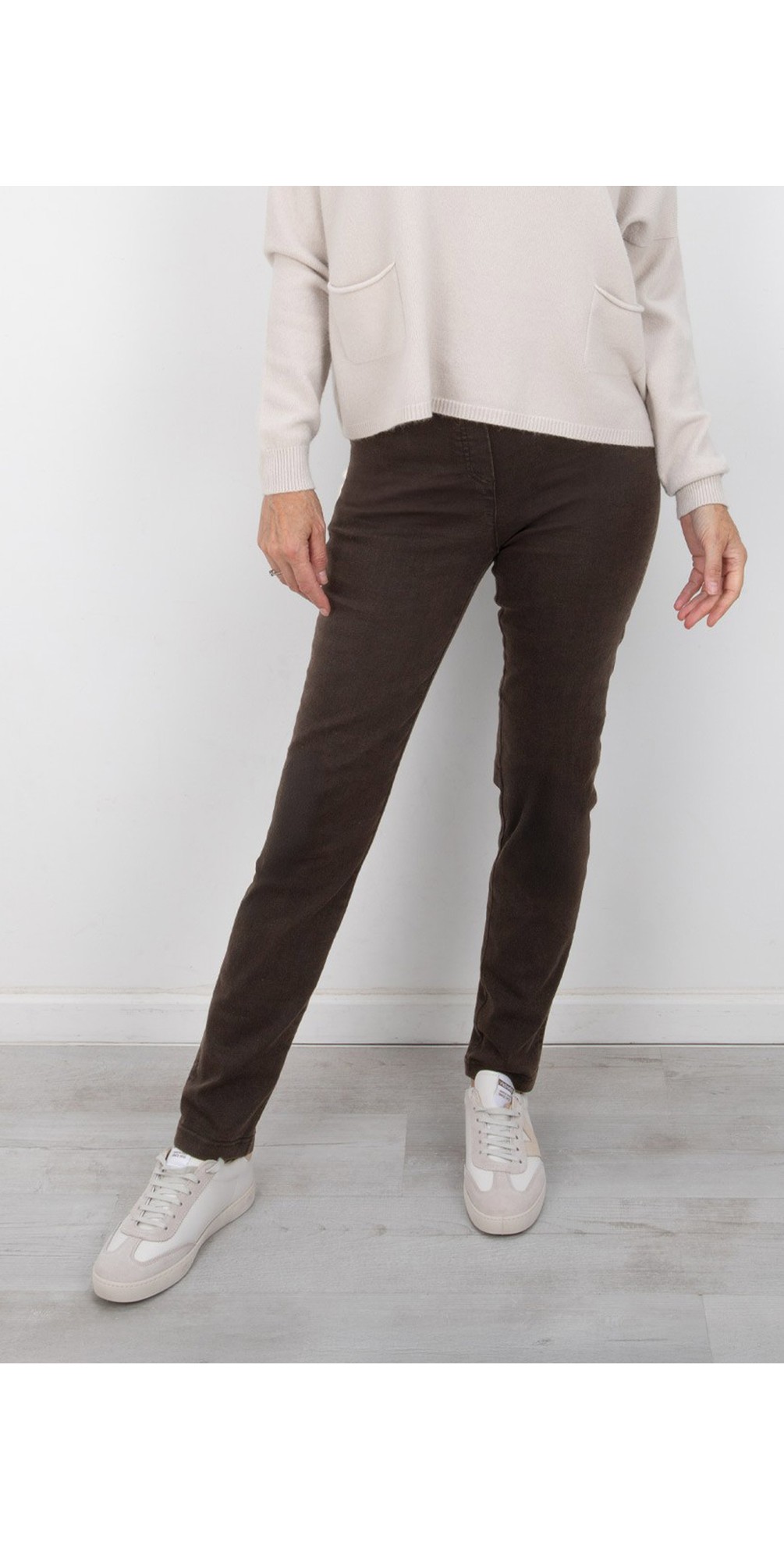 FIT: Robell Bella - Generous fitting trouser with a slim leg and elasticated waistband. We suggest going down a size.